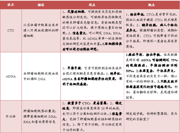 液态活检作为体外诊断的一个分支,以其非侵入式的血液检测技术即能监测肿瘤或转移灶释放到血液的循环肿瘤细胞(CTC)、循环肿瘤DNA(ctDNA)碎片和外泌体(Exosome),是检测肿瘤、辅助治疗的突破性技术。在早期人们对于液态活检的重视程度不够,并没有发现其潜在的应用价值,所以从循环肿瘤细胞概念提出后的几十年该领域进展缓慢,但随着对其研究的深入人们逐渐认识到其巨大的应用价值,在这个阶段关于液态活检的研究呈现出爆炸性增长的趋势(图1),而且各大生物公司也对该领域表现出了巨大的兴趣,对其开发力度也随之不断加大,目前已逐步进入临床。 图1 液态活检研究增长趋势 液态活检技术主要包括CTC、ctDNA和Exosome。CTC是由实体瘤或转移灶释放的,进入外周血循环的肿瘤细胞,侧重于细胞病理诊断,适用于化疗效果监测;ctDNA是肿瘤细胞释放到血液循环系统中的DNA片段,侧重肿瘤基因层面,其主要反映的是肿瘤的基因突变信息,更适用于靶向药物治疗;而Exosome来源广泛,淋巴细胞、树突状细胞、肥大细胞及上皮细胞、肿瘤细胞等都可以分泌外泌体,其内含物包含过度表达的特异性的蛋白标志物,还含有大量的miRNA、cirRNA和DNA片段等,包含的生物信息非常丰富,但目前研究还不够深入,在临床上的应用还有待发掘。相比较于传统的肿瘤诊断手段,液态活检的优势在于能解决精准医疗的痛点,通过非侵入性取样降低活检危害,而且可以有效延长患者生存期,具有较高的性价比。 自液态活检问世以来,围绕其开发出了各种各样的新技术以促使其能尽早在临床上应用,尤其是关于CTC富集和分析技术,已先后出现膜过滤法、免疫磁珠阳性/阴性富集法、微流控法、免疫荧光染色、RT-PCR等,这些技术的不断革新提高了从海量血细胞中获取CTC的准确度和对后续分析提供了支持,也使该项技术的临床应用成为可能。但是我们也应看到虽然有各种各样的新技术涌现,但每一种技术手段都有其局限性,对此,我们进行了归纳总结(如图2)。 图2 CTC富集分析技术比较 从总结图中可以看出现行的CTC分离、分析方法中主要可以划分为依据抗原抗体特异性识别和细胞物理特性差异两大类,对于肿瘤细胞特异性抗原的筛选又可分为EpCAM和CK抗原,而物理特性差异又分为密度差异、肿瘤细胞体积差异、变形性差异等。根据上述的分离原理一些生物公司分别推出了自己的产品,汇总如下(图3),其中尤其以CTC的产品占据最大比重,这也印证了CTC的产业化相较于ctDNA和Exosome走得更快,引起的关注度更高。目前,液态活检在欧美地区发展速度很快,他们占据着该领域的龙头地位,掌握着最前沿的科技技术,其中强生公司的cell search已经获得FDA批准上市销售,isoFlux利用其独特的阳性富集方法开发出全新、高灵敏性的仪器也有意进入中国内地市场。虽然我国液态活检起步较晚,与西方存在一定差距,但是也有诸如莱尔生物公司,格诺思博生物公司和广州益善生物公司开发出了相应的产品,除此之外,国内的一些其他实力厂家看到液态活检的广阔前景也在积极布局,投入大量的人力、财力进行研发攻关。相信在不久的将来会有越来越多的液态活检产品问世。 图3 液态活检产品分类 CTC、ctDNA和Exosome作为液态活检“三驾马车”, CTC的发展、开发自不必多言,那么ctDNA和Exosome又处于一个怎样的阶段呢?就目前的发展状况来看ctDNA和Exosome的研发和产业化尚有很大的空间,无论是机理探究还是研发产品都较少,临床研究也多集中在一期和二期,而CTC则已经进入临床阶段并且积累了一定的临床数据(全球范围内有20个四期临床试验),根据调研结果显示国外目前从事ctDNA和Exosome研究的分别有16家和3家,尚没有一款产品上市销售,国内虽然很多公司蜂拥而入但是真正拥有开发出产品实力的公司寥寥可数。CTC、ctDNA和Exosome本同属于液态活检领域,它们之间既有联系又与区别,这也导至了其研发进度的快慢,我们在此一并对其优缺点进行了总结(图4),从中可以看到它们互有侧重,未来针对其各自特点开发出对应的产品共同为临床结果的确诊形成合力才是它们的发展方向。 图4 CTC、ctDNA和Exosome的比较 液态活检应用广泛,除应用于癌症的预测和治疗外,还应用于唐氏综合症等先天性疾病、性别和亲子鉴定、器官排异、以及糖尿病等。但尤以肿瘤领域为重点领域,围绕肿瘤的筛查、诊断、疗效监测等各个方面已经形成完整的覆盖面(图5),正逐渐被临床医生和病患所接受,我们有理由相信随着液态活检技术的进一步成熟,其最终走向市场、服务临床是必然的,也是攻克肿瘤所必需的。