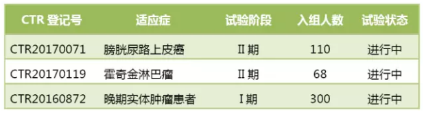 4月17日,百济神州公示启动了BGB-A317在经典型霍奇金淋巴瘤患者中开展的一项II期研究,成为国内在血液肿瘤领域进度最快的PD-1药物。4月18日,百济神州又公示启动了BGB-A317在经治的局部晚期或转移性膀胱尿道上皮癌患者中的II期研究。百济神州是第4家PD-1/PD-L1产品进入II期的国内药企。