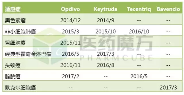 PD-1/PD-L1药物获批的适应症及FDA批准日期
