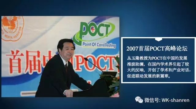 新医改这些年尤其是最近3年来,各种新政新学术新生事物风起云涌,例如:取消药品加成、医联体、网上挂号、分级诊疗、大检验、结果互认、APP应用工具、智慧医疗、大数据、大POCT、020、场景实验室、精准医学、阿里云、两票制、人工智能、可穿戴技术、互联网+、LDT、营改增、大健康、冷链物流等。这些新理念对于新医改未来的方向不但有推动意义,更具有决定意义。 医疗体制改革是当前社会普遍关注的热点问题,恰逢世界医疗格局发生天翻地覆变化之际,这是百年难遇的一个大变革的时代,例如加强医疗救助与城乡居民大保险有效衔接、公立医院薪酬试点改革、改革医保支付方式、公立医院改革、分级诊疗等,形成了我国医疗保障体系的重要组成部分。 2、回顾过去十年的中国POCT 产业发展历程,2007首届POCT(上海)高峰论坛,丛玉隆教授为POCT在中国的发展推波助澜,引领方向,在国内学术界引起了较大的反响,开创了学术和产业对话,促进了产学研联动发展的新篇章。
