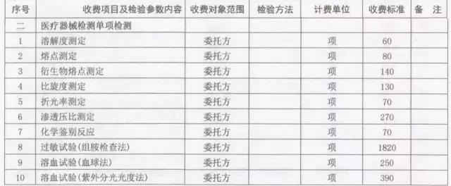 此外,《通知》中提到了医疗器械产品注册加急费,明确由省食品药品监督管理局在受理医疗器械产品注册(包括首次注册、变更注册、延续注册)加急申请时收取,但该费用的具体收费标准,将另行规定。 湖南省医疗器械委托性检验收费标准分为两类: 全项检测收费标准共88项; 单项检测收费标准共577项。 以下是部分收费标准列表,欲查看全部收费标准,点击 “下载原文”。 全项检测收费标准 单项检测收费标准 截至目前,福建、江西、上海、海南、山东、内蒙古、北京、浙江、安徽、陕西、吉林、河北、江苏、宁夏、天津、广东、黑龙江、湖南18个省市相继发布了境内第二类医疗器械产品注册收费标准。 |