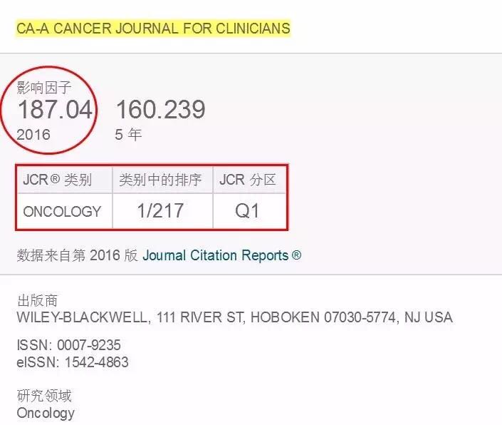 本文转载自“解螺旋•临床医生科研成长平台”,作者:joh。 一年一度,又到了影响因子更新的季节!虽然Web of science 尚未正式发布JCR报告,但各大期刊的影响因子已经陆续涌出。 1. 先放一下众望所归的神刊CA-A CANCER JOURNAL FOR CLINICIANS,相比去年涨了50多分,有人预测它有一天会破200: