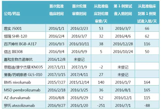 PD-1/PD-L1究竟有多火?从国内的注册申报和临床试验开展情况就可见一斑。截至6月20日,国内获批开展PD-1/PD-L1类药物临床试验的企业有11家,正在等待审批的6家,在研的就不计其数了…… 国内公开登记的PD-1/PD-L1临床试验已有59项,这还没算上研究者发起的未登记的临床试验。于是有了这么一句玩笑话——“国内这么多PD-1产品陆续开展临床试验,不光病人不够用,连研究者都不够用了…… 最近几年PD-1/PD-L1单抗药物的热度持续升高,国内企业也不甘人后、奋起直追。在刚刚结束的2017年ASCO年会上,君实、恒瑞和百济神州3家国内企业分别公布了各自PD-1单抗治疗黑色素瘤的试验数据(百济神州严格意义上讲不是国内数据,而是在澳大利亚开展的)。 目前获准在中国开展PD-1/PD-L1单抗药物临床试验的企业共计11家,包括7家国内药企,4家外资药企。本文从速度、数量、适应症、研究中心的角度对各家公司的临床试验开展情况进行比较分析。 01、临床推进速度 2015年,吃瓜群众纷纷围观恒瑞和君实的抗PD-1单抗申报临床资料谁先到省局、谁先到总局、谁先拿到临床批件,两年过去了,临床推进速度又如何?