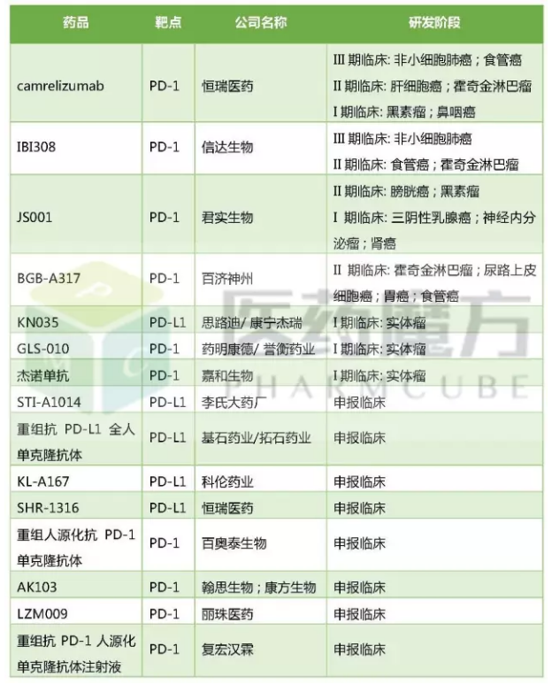 国内企业申报的PD1/PD-L1药物及研发阶段