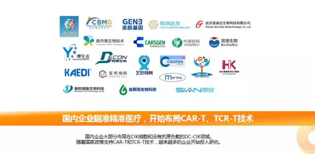 当前,国内大部分企业主要布局在CIK细胞和没有抗原负载的DC-CIK领域。随着CAR-T临床研究的热度上升,以及国家政策支持,国内越来越多的企业开始布局CAR-T、TCR-T技术。