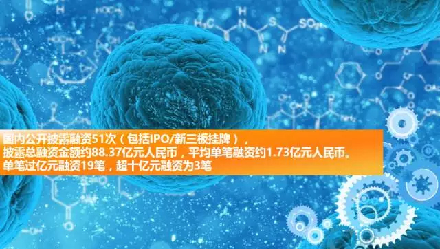 个性化肿瘤疫苗与传统的肿瘤疫苗不同,其通过发现患者体内特异性表达的肿瘤新抗原,继而个性化激活免疫系统,将一定意义上实现个性化精准医疗。 关于肿瘤新抗原的概念,事实上,这种肿瘤细胞在快速生长和增值的过程中出现的新突变蛋白,早在2013年就通过NGS技术被发现。但此前科学家认为大多数肿瘤新抗原所携带的突变本身对肿瘤细胞的成长并没有影响,随着研究的深入,才发现即使同种患者身上的突变也不尽相同,新抗原可作为特异的标志物被免疫细胞识别。 产业投资数据 据火石创造统计,国内肿瘤免疫治疗产业公开披露融资51次(包括IPO/新三板挂牌),披露总融资金额约88.37亿元人民币,平均单笔融资约1.73亿元。单笔过亿元融资19笔,超十亿元融资达3笔。
