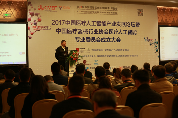10月29日-11月1日,第78届中国国际医疗器械(秋季)博览会(以下简称“CMEF医博会)在昆明滇池国际会展中心隆重举行。本次医博会除了有3000多家医疗器械厂商参展,更举办了数十场主题论坛。 其中,10月30日,由国药励展展览有限责任公司、中国医疗器械行业协会人工智能专业委员会、中国生物医学工程学会、教育部高等学校生物医学工程类专业教学指导委员会联合主办的——2017年中国医疗人工智能产业发展论坛暨中国医疗器械行业协会医疗人工智能专业委员会成立大会最为火爆。动脉网(微信号:vcbeat)记者对本次大会的主要内容做了整理,以下为精彩看点: 在“新时代共创健康中国”大氛围下,无数专家学者、业内精英汇集于此,共探中国医疗人工智能产业发展的远方和脚下。场内座无虚席,每个人都期待在这场医疗人工智能发展的交流盛宴中有所斩获,得到新的启发,寻找战略合作伙伴,明确产业未来发展的方向。 中国医疗器械行业协会常务副会长姜峰对我国医疗器械行业的发展寄予厚望:“当前,中国医疗器械行业的发展处在一个前所未有的好时代,非常多的利好政策出台,大家莫负好时机!”姜峰会长认为,中国生物医疗领域,最适合中国本土企业大展宏图的还是医疗器械行业,比起制药研发的高投入、长周期、多临床、以及漫长的专利保护期,医疗器械的项目不可不为之短频快。而且医疗器械与我国制造业发展的大趋势匹配度最高,加之进来利好行业创新发展的法规政策频出,都营造出一个适宜产业发展的生态环境。 姜峰会长进一步表示,在最好的时代里,我们要抓高起点的细分领域,要使中国的医疗器械产业有一个质的突破,再不能是近15000家企业都盯着国内,争那只占全球5%份额的市场了,我们要提高产品起点,目标是国际市场。讲“进口替代”,不要只狭隘的理解成国内市场的进口替代,甚至用低级的价格竞争、产权侵犯,对于行业的健康发展毫无益处,甚至会影响中国制造的国际形象。我们要有在全球市场上“进口替代”的决心和勇气。 而在人工智能领域,我们的起点与国外基本持平,如果能将人工智能能与医学紧密的结合起来,并将产品落地,那我们抢占全球市场,实现“全球替代”就不再只是一句空口号。 ![]() 中国医疗行业协会姜峰常务副会长致辞 随后,姜峰会长宣布了新当选的中国医疗器械行业协会医疗人工智能专业委员会理事会名单。至此中国医疗器械行业协会医疗人工智能专业委员会正式成立,对未来中国医疗器械医疗人工智能领域的健康蓬勃、合规有序发展,起到正面引导、积极服务配合的作用。 ![]() 中国医疗器械行业协会医疗人工智能专委会发起单位合影 当天,中国食品药品检定研究院副院长张志军特地赶到现场,以示对专委会成立的支持和对医疗人工智能产业发展的希冀。张志军院长表示,当前人工智能蓬勃发展,与医疗行业的融合成为医疗器械行业发展的关键领域。我国也同时启动了各项支持产业发展的专项政策。 今年3月,全国两会上人工智能被写入政府工作报告,成为代表委员热议的话题。近年来,为贯彻落实《中国制造2025》、《互联网+》等国家战略,以信息技术、制造技术深度融合为主线,以人工智能在制造业的创新应用为主攻方向。各相关部委在大数据、智能制造、机器人产业等人工智能相关领域开展了一系列工作,积极推动人工智能技术的产业发展,及时加强顶层设计和规划部署,相关部位联合发布了《智能硬件产业创新发展专项行动(2016—2018)》。 在相关部位出台的一些系列重点政策的催化下,人工智能产业的发展有望在技术研发层面、资金注入、优惠政策等方面获得更充足的支撑,十三五期间或将迎来价值爆发。据张志军院长介绍国家食品药品监督管理局医疗器械标准管理中心正在着手制定有关医用机器人的标准和指南。 当前,人工智能产业链上下游协同机制尚未健全,迫切需要健全的行业内专业组织,在创新技术上有所协调,共享资源促进产业发展。张志军院长表示:“相信中国医疗器械行业协会医疗人工智能专业委员会对此会作出努力,同时也期待政、产、学、研、用各界共同推动医学人工智能技术的发展。” ![]() 中国食品药品检定研究院副院长张志军致辞 在各界的关注和期待下,东南大学生物医学工程学院万遂人教授为在场的各位同仁阐释了医学人工智能高层论坛的重要意义。数字化、网络化、智能化是新一轮产业革命的三大要素,为迎接医学人工智能的新时代。业内人士要在自学习人工智能方面潜心研究,争取在2020年达到深度智能自学习的水平。 ![]() 中国生物医学工程学会副理事长、东南大学万遂人教授主题演讲中 阿里健康医疗AI引擎平台运营总监程晓介绍了阿里健康在医疗AI全方位的布局,尤其“新农村战略”广受关注,即普惠医疗服务,利用阿里现有的农村阿里站点优势,让AI助力村卫生站+村淘的基层医疗服务新模式。 经纶世纪医疗网络技术(北京)有限公司CEO余中博士一语“有多少人工,才有多少智能”概括出了目前医疗人工智能在病理数据标记上遇到的瓶颈和发展的无奈,并且提出了“医学问题”的解决范式:大数据(标注)+机器学习+医学专业;提供医学服务的范式应该是:大数据+模型+规则+医学服务管理。 大数据医学的医学服务管理核心问题是从监督室学习走向半监督学习最终到自发学