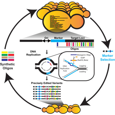 实验图示来源Cell 这种新的基因编辑方法——真核多重基因组工程(eMAGE),是基于DNA复制的滞后链来合成单链寡核苷酸(ssODNs)。该机制不需要RAD51蛋白(真核生物体内的一种重组蛋白,相当于原核生物的RecA)就可进行定向同源重组,避免了DNA双链断裂的产生,使染色体在单碱基分辨率上产生精确改变,且效率大于40%,在靶向基因位点不会产生意外突变。 在实验中同时加入多达12个寡核苷酸,在一次转化中完成多达60个有针对性的突变。而用一个复杂的寡核苷酸池进行迭代转化,可以迅速产生大于105的组合基因组多样性。 研究小组在酵母中用新的基因编辑方法,实施了DNA复制和修复功能,这样就可以在基因组的许多不同区域插入新的遗传信息,而不产生双链断裂。这种方法被用来在酵母β-胡萝卜素生物合成途径产生多种遗传变异,以及在启动子、基因和终止子中产生精确突变,从而改变类胡萝卜素的含量。 前景 这种新改进的基因编辑技术可以加快取代致病基因,识别并产生天然抗生素或抗癌药物以及刺激新的工业生物技术产品的创造速度。该小组的方法被用来产生近一百万个组合遗传变异,以便在许多基因组位点引入精确的遗传变化,从而改变基因表达和代谢。这种对DNA景象复制、修复和重组的保守过程可以实现自动化,并可以在真核生物中的多重组合基因组工程建立一个通用策略。 Isaacs说:“我们可以创造大量的突变组合,这为我们提供了前所未有的工具来识别疾病的驱动性突变和从根本上重新重编程细胞行为。我们的目标是进一步发展技术和扩大到多细胞生物上。” 参考资料 1) Precise Editing at DNA Replication Forks Enables Multiplex Genome Engineering in Eukaryotes 2) Team's advance allows gene editing with surgical precision |