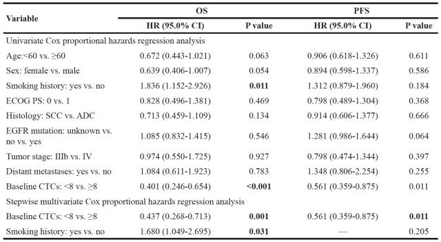 参考文献: Tong, B. et al. Prognostic significance of circulating tumor cells in non-small cell lung cancer patients undergoing chemotherapy. Oncotarget (2017). |