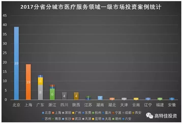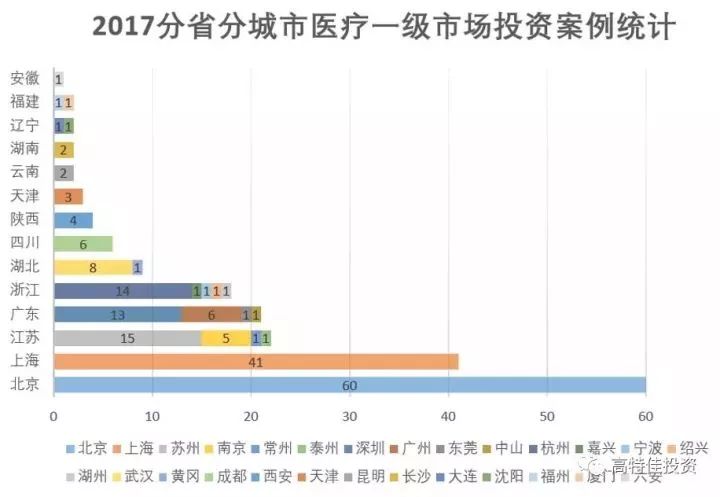 图3:2017年分省分城市医疗一级市场投资案例统计