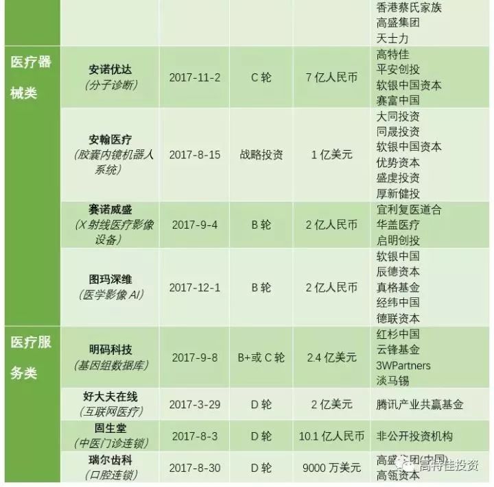 高特佳投资、君联资本、启明创投在2017年的布局(已公开信息)仍属全面而显著。
