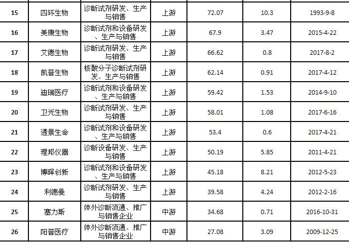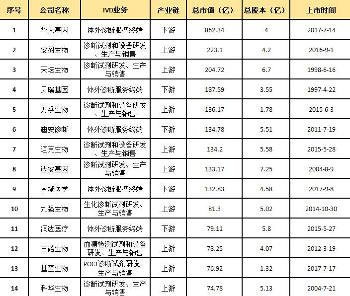 下表列出国内IVD相关上市公司:
