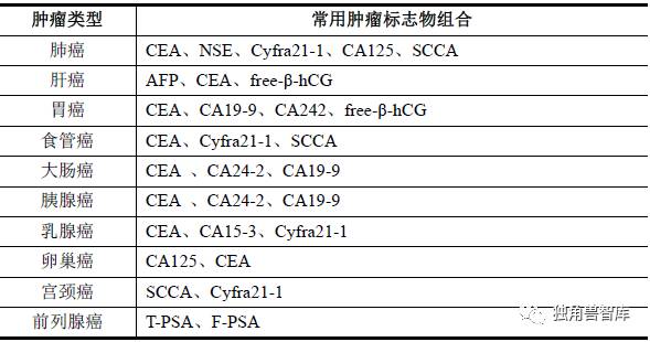 常用的几种肿瘤标志物组合如下: 肿瘤标志物体外诊断产品是透景主导产品之一,采用先进的诊断技术,满足肿瘤标志物“高通量、多指标”联合检测的临床诊断需求,为癌症“早发现、早诊断、早治疗”提供了重要的技术手段。肿瘤标志物体外诊断市场发展对透景产品的销售具有较大的影响。