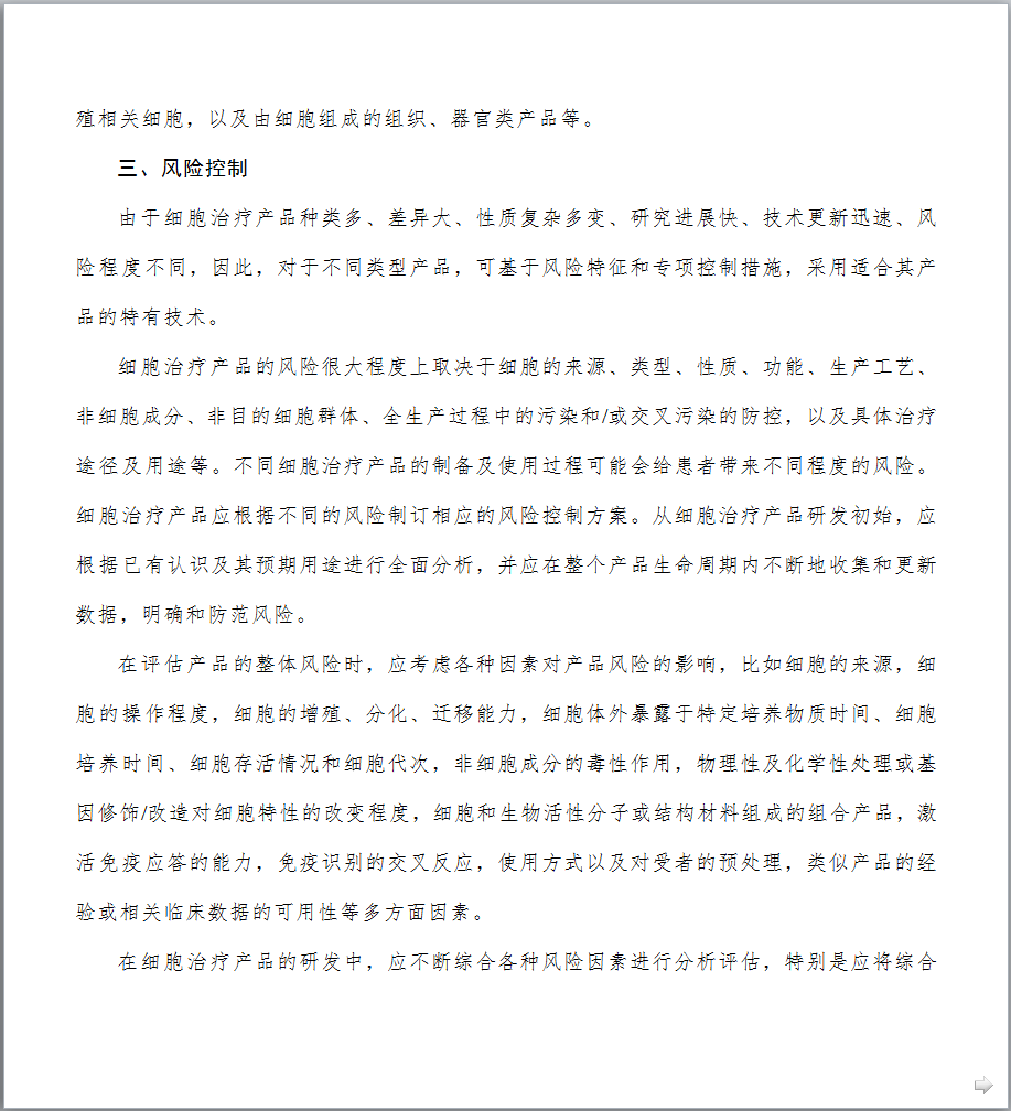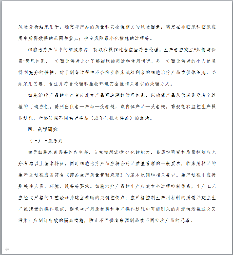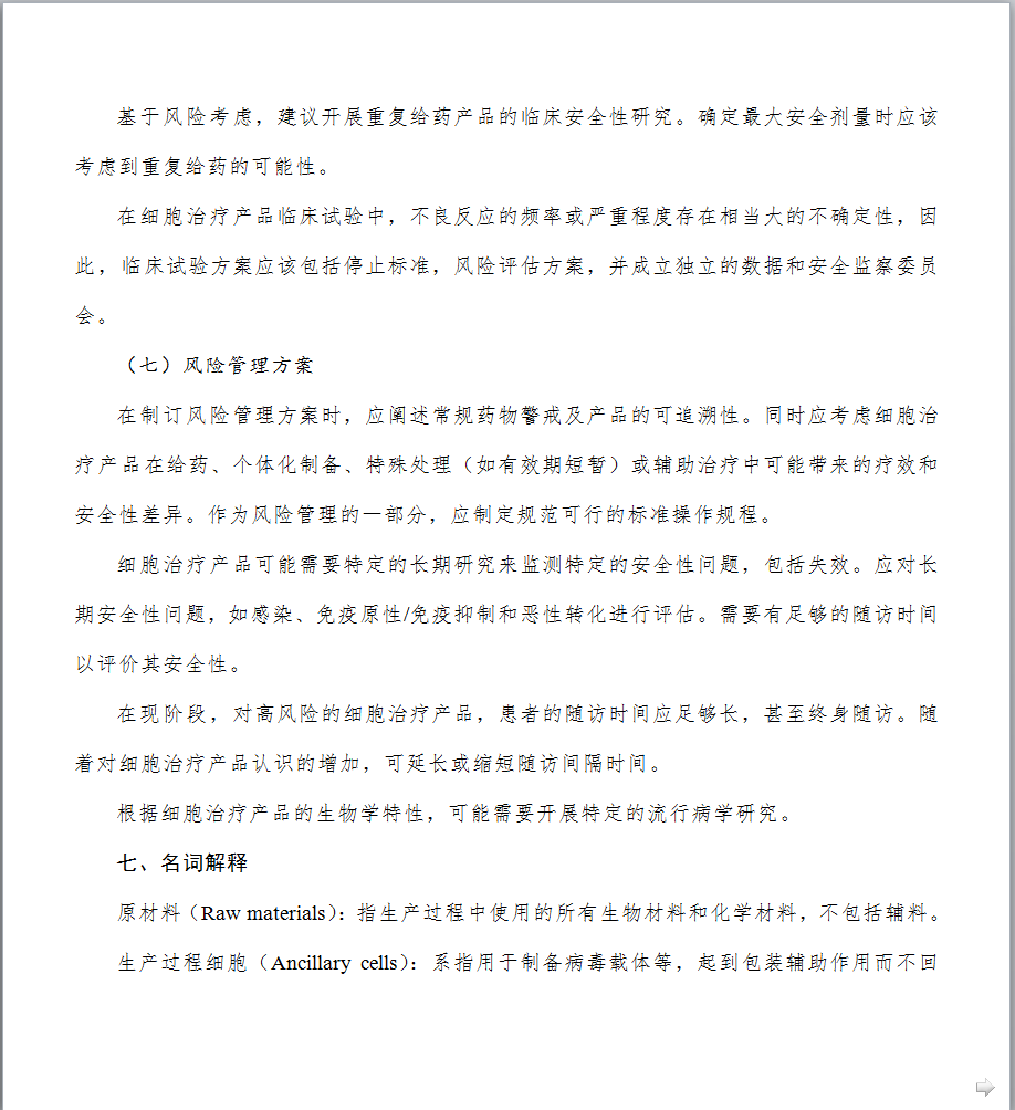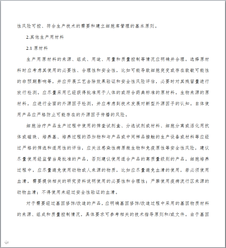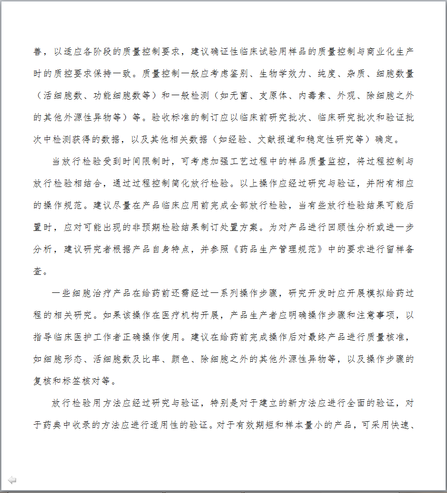 1.制定发布《细胞治疗产品研究与评价技术指导原则》的背景是什么? 细胞治疗技术是目前国际医学前沿重点发展领域,它给一些人类疑难疾病的治疗提供了新的希望。近年来,细胞治疗领域不断取得新的研究成果,细胞治疗产品的研发与评价也日益受到国内外制药企业及各国政府部门的高度关注。针对当前细胞治疗产品研究迅猛发展和日趋激烈的态势,为更好地给相关科研机构和企业创造细胞产品研发环境并提供技术支持,我局于2015年起组织药品审评中心着手起草细胞治疗产品技术指导原则。经过广泛调研国外相关指南并充分征求业界意见,药品审评中心起草了《细胞治疗产品研究与评价技术指导原则》(试行),明确了该指导原则的范围和定位,提出了细胞治疗产品在药学研究、非临床研究和临床研究方面应遵循的一般原则和基本要求。本指导原则的发布,旨在进一步规范细胞治疗产品的研发,提高其安全性、有效性和质量可控性水平,从而推动和促进我国细胞治疗领域的健康发展。 2.本指导原则的适用范围是什么? 本指导原则主要适用于按照药品进行研发与注册申报的人体来源的活细胞产品。对于按照医疗技术或其他管理路径研发的细胞治疗技术/产品,应执行其他相应管理规定及技术要求。本指导原则不适用于其他部门已有明确管理规定和技术标准的细胞类制剂,包括输血用的血液成分,已有规定、未经体外处理的造血干细胞移植等;基于目前的相关认识和管理现状,本指导原则也不适用于生殖相关细胞以及由细胞组成的组织、器官类产品等。 3.细胞培养过程中是否可以使用人血清? 应尽量避免使用任何来源的血清,包括人血清,如必须使用,申请人应提供充分的研究资料,说明在细胞培养过程中使用人血清的必要性。同时,技术审评过程中也会结合产品临床应用的价值进行风险与获益的评估。在满足人血清使用必要性的前体下,申请人需提供所使用的人血清的选择依据、安全性研究资料以及申请人对人血清质量的控制策略等,细胞治疗产品中不得使用未经过安全性验证的血清。随着技术的发展与革新,鼓励申请人积极探索更加安全、成分更加明确的血清替代物用于后续的研究与生产。 4.需要进行体外基因修饰/改造的细胞治疗产品,使用的基因修饰/改造物质材料的质量要求是什么? 具体要求可参考基因治疗产品相关的技术指导原则和文件。申请人应对基因修饰/改造物质材料的质量、安全性和生产工艺的稳定性进行充分的研究与评估,建立相应的检测标准,并进行放行检验。申报资料中应提供基因修饰/改造物质材料的设计、操作过程、生产工艺和质量控制等相关研究资料。由于基因修饰/改造用物质可能会伴随生产过程成为细胞治疗终产品的物质组成,因此应符合药品的生产质量管理规范。 5.细胞治疗产品生产过程控制中应重点关注什么? 细胞治疗产品的生产过程应遵从《药品生产质量管理规范》的基本规范和相关原则。细胞治疗产品的每一个生产步骤均应该进行研究与验证,以保证工艺的合理性和稳定性。生产过程中应对全过程进行监控,并根据工艺特点设定重要工艺步骤的监控点,并加强监控。细胞治疗产品直接输入人体,无法耐受病毒、细菌等灭活或去除工艺的操作处置,过程中的控制十分重要。申请人应充分识别并控制过程中的污染风险,特别是交叉污染风险应结合具体情况和研发的进程,尽量达到封闭化、自动化的生产。另外,还要采取措施避免不同样品或批次间的混淆。申请人为责任主体,应自行评估并严格控制工艺过程的各种风险,使每一例患者的细胞产品的质量均达到标准控制要求。另外,提醒申请人关注细胞治疗产品生产规范的相关法律法规或技术指导文件要求的更新。 6.细胞治疗产品质量放行检测项目如何设定?是否可以参考国外已经上市产品的放行检测项目和标准? 细胞治疗产品的检测机制建议采用中间样品的质量检验和终产品放行检验相结合的方法。中间样品可以是生产过程中适宜和关键的控制节点,需要考虑预留检测完成需要的对接时间,方便取样留存,抽取样本量后不影响后续处理等限制因素。检定项目应当建立在产品质量研究以及对生产工艺和生产过程充分理解的基础之上,同时兼顾产品的特性和当下的科学认知与共识。随着研究的不断深入,工艺相关信息应逐渐获得累积,检验方法应逐步完善,以适应各阶段的质量控制要求,建议确证性临床试验用样品的质量控制与商业化生产时的质控要求保持一致。 产品放行检测的项目和标准可以参考已上市品种,但是考虑到不同产品的原材料情况、生产工艺情况、过程控制和检测方法及方法的操作控制等方面的差异,还需申请人结合自身产品的实际情况制订符合产品特点的控制项目和标准。对于不能通过生产过程有效控制,但对于发挥临床疗效和安全性控制必须的重要项目等,应在检测放行中进行质控。 7.细胞治疗产品放行检测用方法是否可以采用新型的、快速的检测方法代替传统的检测方法? 放行检验用方法应经过研究与验证,特别是对于建立的新方法应进行全面的验证,对于药典中收录的方法应进行适用性的验证。对于有效期短和样本量小的产品,在建立快速、微量的新型检测方法同时,研究者应对新型检验方法与传统检测方法进行比较和评估,在没有完成