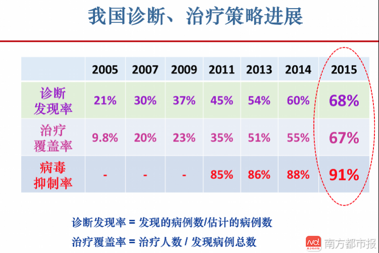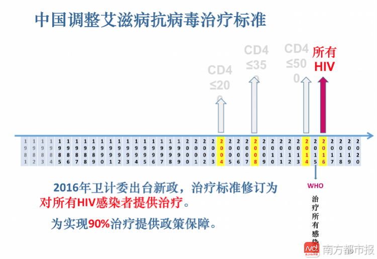 中国国家卫计委也在2016年修订了艾滋病免费抗病毒治疗的标准,对所有HIV感染者和艾滋病患者均建议实施抗病毒治疗,即不再考虑CD4+T淋巴细胞计数水平,只要发现感染就可以开始治疗。 为了发现这12万人感染者,2016年全国一共做了各类HIV检测1.69亿人次,较8年前翻了3.7倍多,2008年全国一年的HIV检测量还只有4503万。与此相对的是,全国HIV的检测阳性率从2008年的12.5/万降至7.4/万。 检测阳性率的下降,是因为检测策略发生变化。“中国现在每年的检测量占全球HIV检测量的1/3”,吴尊友说,过去中国对HIV的检测集中在重点人群,这两年采取扩大检测的策略,导至检测阳性率下降。 然而,即使艾滋病检测实验室已经覆盖几乎98%以上的县级医疗机构,但“我们依然有很多感染者没有发现,全国大概还有20-40万的HIV感染者未被查出,我们不知道他们在哪”,蒋岩说。 中国疾病预防控制中心的统计数据显示,截至2015年底,全国大约有57.7万人感染HIV,但仍有32.1%的感染者未被发现。 为什么“检测”是关键? 多项研究发现,接受治疗且病毒载量测不到的感染者,经性行为感染他人的风险小至可忽略。这一研究让“以治疗为预防”成为防艾策略,但首先要找出感染者 人类要想打败传染病,找到并控制传染源是关键环节。世界卫生组织WHO报告的数据是,2016年,大约有30%的HIV感染者不知道自己感染了HIV。 在临床医生看来,艾滋病已经不是“超级绝症”,它更像是一种“慢性病”,只要尽早治疗,按时服药,定期监测就可以加以控制。 目前在中国的艾滋病流行趋势中,“性”是最主要的传播途径。在2016年新发现的感染者当中,94.7%的人经性传播途径感染,67.1%是异性间传播。 2008年,瑞士国家艾滋委员会(SNAC)发布了一份声明:坚持抗逆转录病毒治疗、病毒载量至少6个月低于40cp/ml,并且没有其他性传播的传染病感染者不会通过无安全套的性行为将HIV传染给伴侣。这份报告发布之初,引发了巨大争议,即使是很多专家也质疑这样的结论。 早在瑞士发布声明之前的2005年,一项名为“HPTN 052”(HIV Prevention Trials Network)的研究课题由北卡罗来纳大学全球健康和传染疾病研究中心主任Myron S. Cohen牵头启动。这项研究招募了9个国家的13个地区近1763对HIV一阴一阳的“配偶”,97%为异性恋配偶,研究发现早期抗逆转录病毒疗法(ARD)可以显著降低对伴侣的感染率。 “HPTN 052”临床研究最终完成已经是十多年后的2016年7月。《新英格兰医学杂志》上发表研究最终结果:当HIV感染者在免疫系统相对健康的早期就开始抗逆转录病毒治疗,他们通过性行为感染伴侣的可能性降低了93%。在所有1763对配偶中,只要是治疗中HIV病毒载量得到稳定持续抑制的,就没有发生一例通过性行为传染伴侣的事件发生。 HPTN 052研究主要负责人Myron S. Cohen教授说,“这项研究实际上确认了在HIV感染者诊断之后第一时间给予他们治疗的意义,这不仅有助于改善他们个人的健康,对于公共健康也很有必要。” 2017年11月,著名医学杂志《柳叶刀》也发表了名为《“U=U”2017年起航》的社论文章。“U=U”是“Undetectable = Untransmittable”的简称,意思是“HIV检测不出就不会传染”。这一结论已经被超过60个国家的400多家机构承认。其中也包括美国疾病预防控制中心。 联合国艾滋病规划署(UNAIDS)执行主任西迪贝曾表示,“国际社会如果能把握未来5年的‘窗口机会期’,继续加大投入,进一步扩大抗逆转录病毒治疗范围,提高治疗质量,到2030年之前,即便艾滋病疫苗还未问世,艾滋病也将不再会对公众健康构成威胁。”届时,艾滋病将不再是公共卫生威胁,HIV携带者可以跟正常人一样学习、工作,平均预期寿命与常人无异,而且病毒不会传给下一代。 正是对预防研究推动的防艾前景足够乐观,2014年,在墨尔本召开的第二十届世界艾滋病大会上, UNAIDS提出2030年终结艾滋病的愿景,同时表示,2020年将力争实现三个90%的防治目标——即90%的感染者知道自己的感染状况,90%已经诊断的感染者接受抗病毒治疗,90%接受抗病毒治疗的感染者病毒得到抑制。