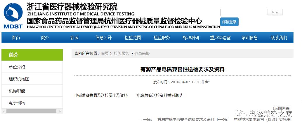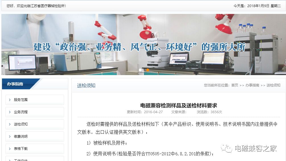为医疗器械企业收集了关于产品要做电磁兼容注册检验的注意事项,怎么送,送之前怎么做,怎么做可以加快节省时间? tips(1):知道自己企业的产品是几类?送哪个EMC实验室?哪个实验室可以接收?检验周期大概多久?要测试哪几个项目?哪些项目可以豁免等。尤其2017年取消检验收费后,要快速找到自己企业送检的实验室。 tips(2):注意产品证书到期时间,提前做好送检换证准备。以目前的情况来看,提前一年做产品电磁兼容的注册检验为最佳,再迟会显匆忙。 tips(3):提前对医疗器械电磁兼容性问题做好了解,对自己企业的产品在EMC方面哪些容易出现问题做好预防。提前做好送检资料的准备,包括产品说明书,技术要求,送检资料等(各省市不尽相同,可以互相参考)。 tips(4):做好产品EMC预测试评估。目前各大省市的EMC检测实验室任务量繁重,企业送检积压产品严重,所以为节省检测所和企业本身的时间,送检之前做好预测试评估,评估结果达到送检要求再送。这样可以提高检测所检测效率,加快企业拿证速度。 tips(5):注意产品电磁兼容问题与安规问题的矛盾。目前很多设备解决了电磁兼容问题,随之而来带来了产品的安规不通过的问题,所以要协调好这两个问题。 tips(6):做好医疗器械产品后期EMC抽检准备。医疗器械电磁兼容后期抽检已是必然,如何做好在拿证合格的情况下,也能顺利通过抽检,如何把电磁兼容问题和量产问题结合起来,这是企业基于本身情况要考虑的问题。 tips(7):本省市没有电磁兼容检测实验室的医疗器械企业,抓紧与当地药检所沟通联系,寻求推荐的EMC实验室或者自行提前找好注册检验或者委托检验的检测实验室。 下面整理了江浙沪三家医疗器械电磁兼容实验室的一些信息,希望对医疗器械企业有帮助,具体有问题可以联系检测所咨询或者添加本人微信咨询。(欢迎指正) 【江苏】 江苏省医疗器械检验所组建于2001年,前身是江苏省医疗器械产品质量监督检验站(成立于1984年),是直属于江苏省食品药品监督管理局的全额拨款事业单位。专业从事医疗器械产品、药品包装产品的注册检验、市场监督检验及社会各方的委托检验、质量仲裁检验等检测工作,并从事有关技术培训和业务指导工作。 经过20多年的发展,我所在设备条件、人员水平、技术能力上都取得了长足发展。现办公地点位于南京市建邺区康文路17号,功能结构完善,设施齐全,建筑面积约15000平方米,承检的医疗器械产品范围涵盖了物理、化学、生物、微生物、电子、光学、磁学、电气等领域。 目前已获得SFDA通过的认可项目为962项,且已获得中国实验室国家认可委员会的国家实验室认可。 欢迎扫码关注江苏省医疗器械检测所微信公众号 电磁兼容检测样品及送检材料要求送检时需提供的样品及送检材料如下(其中产品标识、使用说明书、技术说明书国内注册提供中文版本,出口认证提供英文版本): 1) 被检样机及附件; 2) 使用说明书(检验是否符合YY0505-2012中6.8.2.201的条款); 3) 技术说明书(检验是否符合YY0505-2012中6.8.3.201的条款); 4) 产品标识、标记 -设备或设备部件的外部标识(检验是否符合YY0505-2012中6.1.2011的条款); -警示(检验是否符合YY0505-2012中6.1.201.3的条款); 5) 如有提供产品的风险报告文件(针对产品基本性能的风险或者临床对于基本性能准确度的要求); 6) 说明样机中产品结构(如几种探头、是否包含电源适配器等等); 7) 样机中EMC主要关键元器件(如开关电源、滤波器、及变压器等)详细资料、测试报告和(或)证明材料; 8) 样机电路图(网电源部分、应用部分、电路板等详细电路图); 9) 样机结构图(结构图、装配图); 10) 样机PCB布板图(包括各电子部件的位置图); 11) 产品的运行模式不能通过标配软件或其它方式来实现,以及产品的基本性能有关的功能在常规操作不能被观察或验证,应提供专业软件或类似的方法; 12) 填写EMC相关的表格,填写的内容详见表D1~表D8,以及承诺书(加盖公章)。 备注:如果按GB/T18268.1-2010《测量、控制和实验室用的电设备电磁兼容性要求》标准测试的设备,或其他不适用于YY0505-2012的医用电气设备,请参照其他相关要求。 附件[右键下载]: 电磁兼容送检材料要求(http://www.jsmit.org.cn/index.php 登陆网站自行下载) 实验室地址: (1)江苏省医疗器械检验所(南京市建邺区康文路17号) 前台电话:025-69655600 业务电话:025-69655908 025-69655906 业务传真:025-69655907 (2)江苏省医疗器械检验所苏州分所 地址:苏州高新区科技城锦峰路8号1#楼 邮编:215163 【浙江】 浙江省医疗器械检验研究院(MDST),成立于1977年,浙江省食品药品监督管理局(ZJFDA)的直属事业单位,是国家食品药品监督管理总局(CFDA)的10个国家级医疗器械检验中心之一,是一家专业从事医疗器械质量监督检验和医疗器械产品认证检测的国家级检验机构。 医疗器械电磁兼容送检要求及资料下载 见下图: 医疗器械电磁兼容检测委托书合同下载 见下图: 实验室地址:杭州市下沙经济技术开发区25号大街379号 【上海】 上海市医疗器械检测所(CmTC)是中国合格评定国家认可委员会、国家食品药品监督管理总局及中国质量认证中心等有关部门分别审查认可的国家级医疗器械质量监督检验机构、医疗器械产品认证检测指定实验室,是上海市食品药品监督管理局的直属单位。 本所2000年得到了欧洲著名认证机构德国TUV-PS的认可与授权,在医疗器械通用电