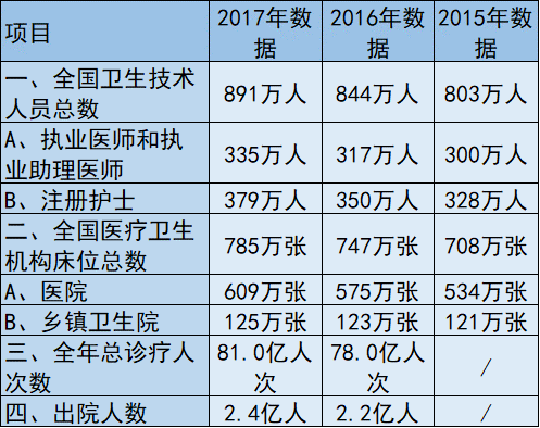 与之相对,在2017年内,全国公立医院的数量比2016年又少了0.1万个,村卫生室少了0.4万个。