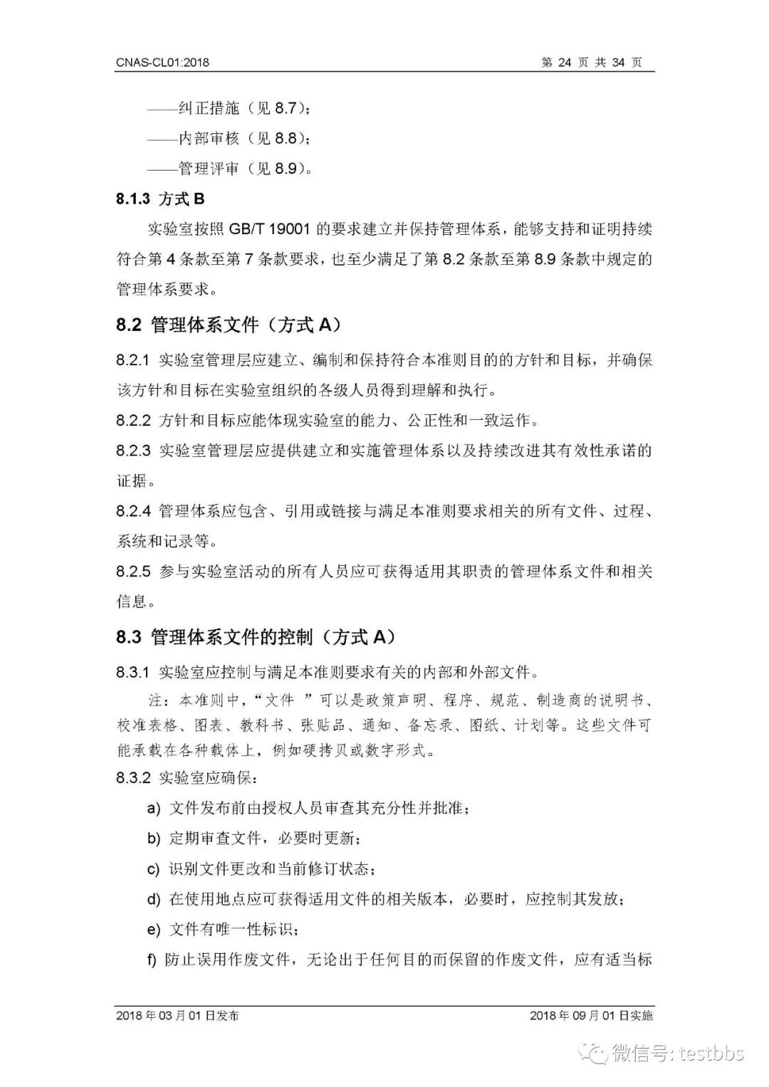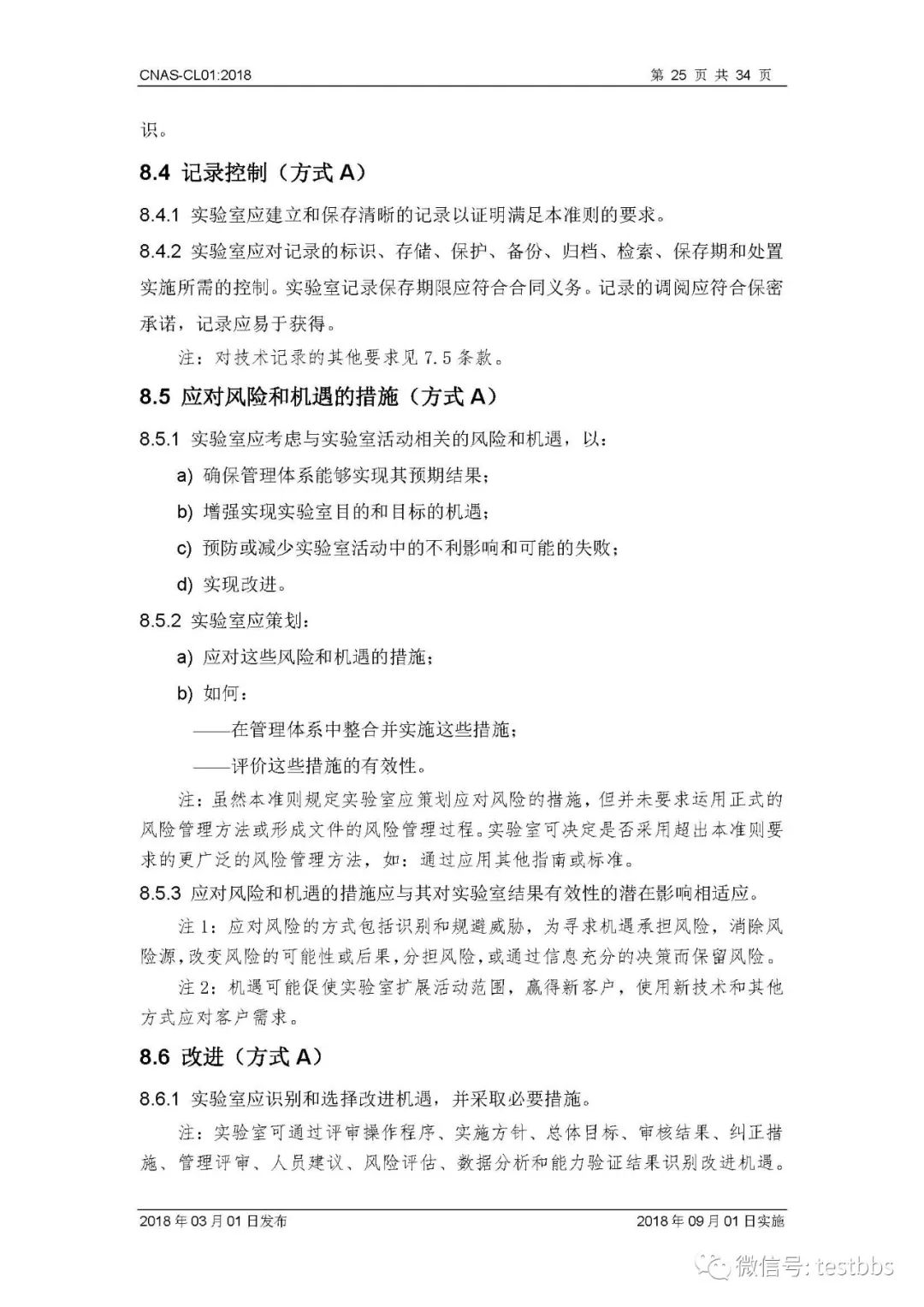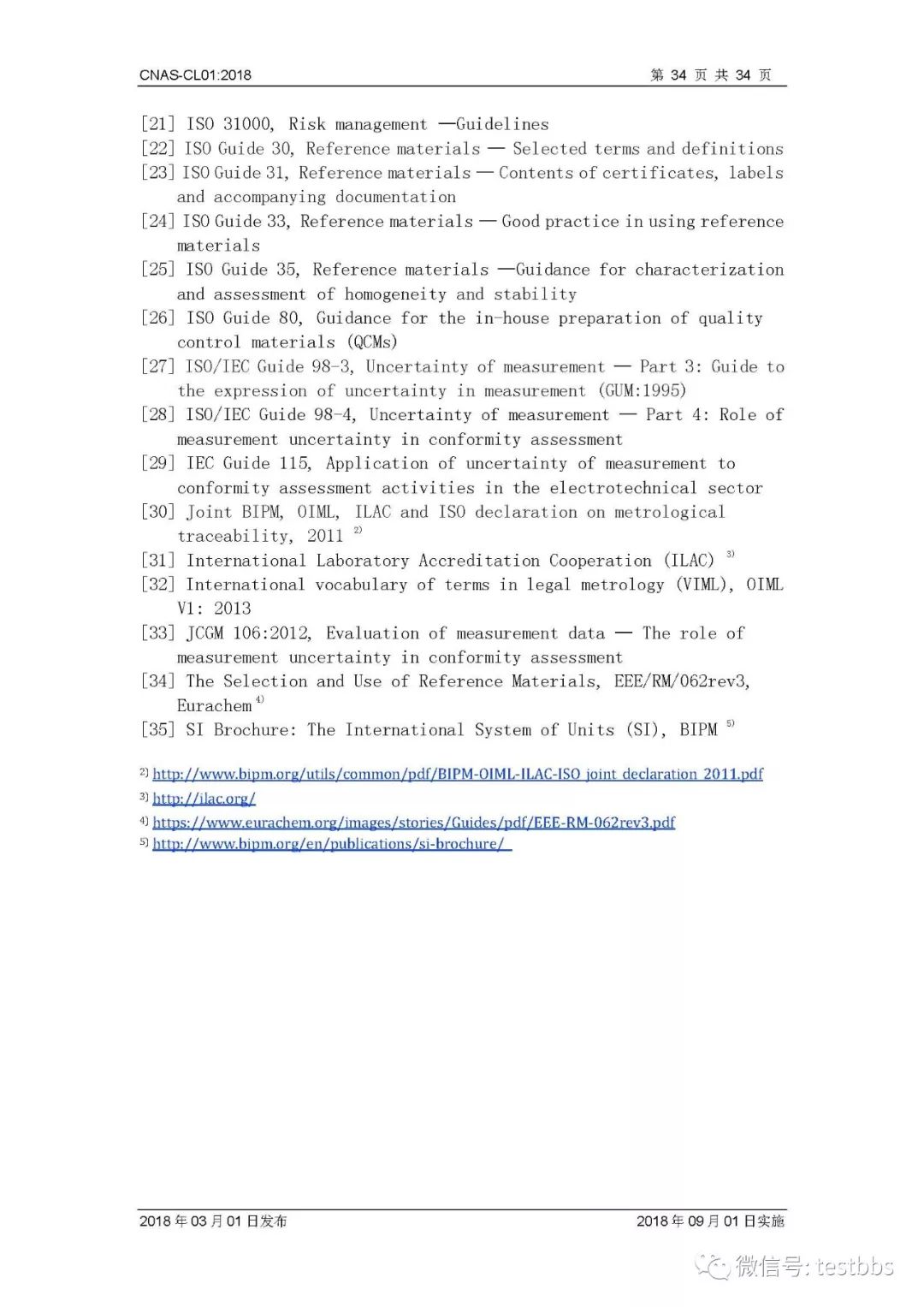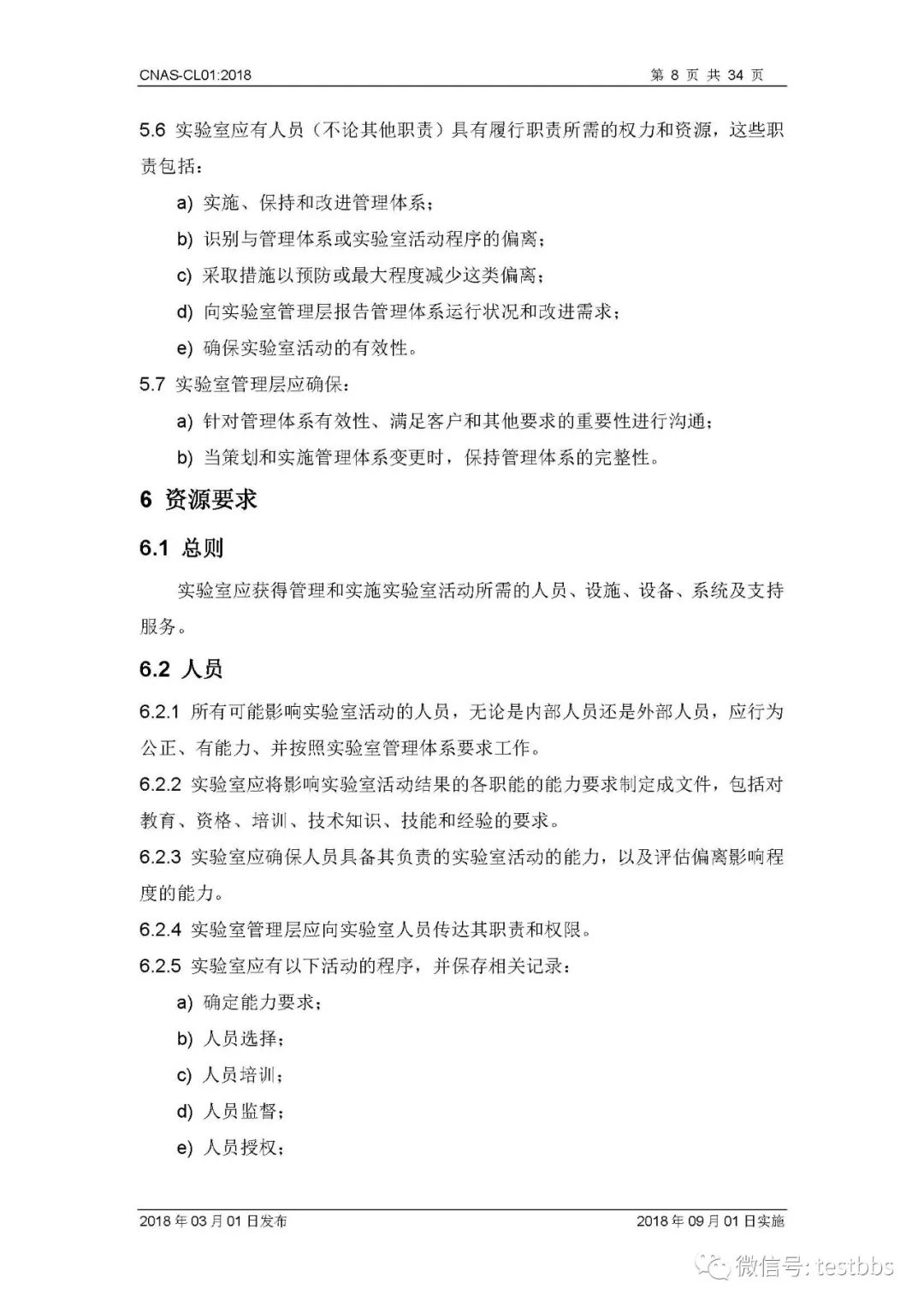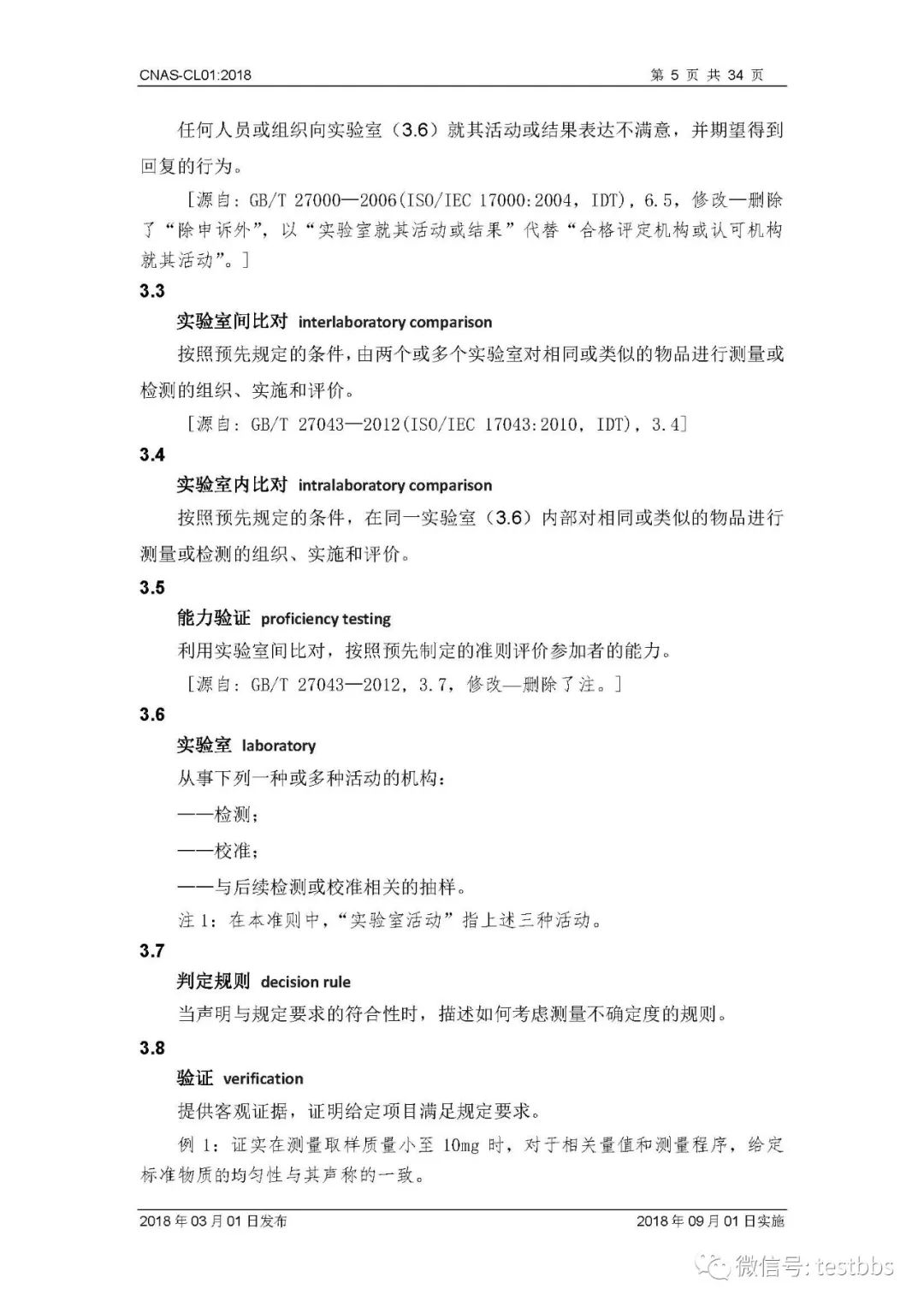 CNAS-CL01:2018 《检测和校准实验室能力认可准则》 3月1日CNAS官网发布了最终版的CNAS-CL01:2018《检测和校准实验室能力认可准则》,将于2018年09月01日实施。我们第一时间予以转发发布~ 原文链接地址: https://www.cnas.org.cn/rkgf/sysrk/jbzz/2018/03/889065.shtml