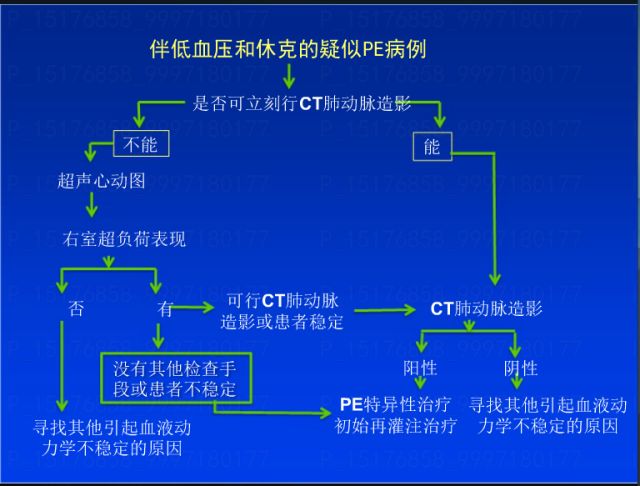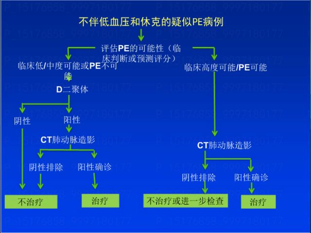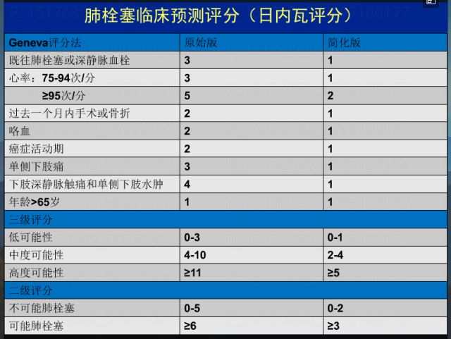 绝大多数静脉血栓栓塞(VTE)患者没有临床表现,多数病例往往得不到及时的诊断,研究显示: 在死亡前得到诊断的致死性肺栓塞(PE)不足50%; 怀疑深静脉血栓形成(DVT)的病例用客观检查得到证实的比例<30%; 约80%的DVT病例无临床表现。 想问问老师: 如何评估DVT的临床可能性? 如何评估肺栓塞的临床可能性? 伴/不伴低血压和休克的疑似肺栓塞病例如何诊断? 肺栓塞的检查手段有哪些? 临床实践中,Wells评分可用来进行DVT临床可能性评估: 在三级Wells评分中,<1分为DVT低可能性;1~2分为DVT中可能性;>2分为DVT高可能性。在二级Wells评分中,≤1分的患者不可能发生DVT;≥2分的患者可能为DVT。 对疑似肺栓塞患者进行临床可能性评估可采用Wells评分和日内瓦评分: 对于伴低血压和休克的疑似肺栓塞病例,采用以下流程进行诊断: 对于不伴低血压和休克的疑似肺栓塞病例,采用以下流程进行诊断: 肺栓塞典型的临床表现是突然出现不明原因或患者难以解释的呼吸困难,或者心功能稳定的患者突然倒地、不明原因的心功能不全加重。另外不明原因的血压下降和/或晕厥、不明无力/虚脱、不明原因的低氧血症也应该考虑肺栓塞。肺栓塞最常见的临床体征是呼吸和心率增快。 肺栓塞的检查手段有心电图、超声心动图、血气分析、肺通气-灌注扫描、肺动脉造影、胸部CT、磁共振、D-二聚体。X线胸片、心电图、超声心动图和血液生化可除外其他引起的胸痛(急性心梗、主动脉夹层、动脉瘤破裂等)和呼吸困难(如左心衰竭)的原因。 1. 心电图 肺栓塞患者最常见的心电图表现为窦性心动过速;其次为右心负荷过重、右心衰竭,心电图主要表现在房性快速心律失常、不完全右束支传导阻滞、V1导联呈QS波、右胸前导联(V1-4)T波倒置或者ST段压低、S1QIIITIII。以上情况新出现对诊断肺栓塞有一定的价值。 2. X线胸片 肺栓塞患者出现肺动脉高压和右心功能不全,胸片表现在肺动脉段突出、右下肺动脉增宽、上腔静脉影、肺透过度增加、肺纹理减少。X线胸片不能显示肺栓塞,但可以显示其结果,如肺梗死、胸膜渗出。X射线胸片对鉴别诊断有意义,能够发现其他疾病,如排除左心衰竭。 3. 血气分析 肺栓塞患者氧分压及血样饱和可能下降,二氧化碳分压可由于过度通气而下降;20%的肺栓塞患者动脉氧分压正常。血清分析与肺栓塞的相关性不好,与原有的心肺功能关系很大。但氧饱和度下降说明肺栓塞病情较重。 4. 超声心动图 超声心动图可协助诊断肺栓塞,如直接发现肺动脉内的栓子及间接发现右心室过度负荷。超声心动图可用来评价肺栓塞的血流动力学变化,如肺动脉压力。对肺栓塞的鉴别诊断(AMI、夹层、心包填塞等)有一定的价值。 5. 加压血管超声 加压血管超声对于近端DVT的诊断敏感性为90%,特异性为95%;对远端DVT的敏感性为50~60%。如果临床怀疑肺栓塞,同时存在近端DVT,则肺栓塞的诊断成立;如果发现是远端DVT,则诊断肺栓塞需要进一步检查。 6. 肺动脉造影 肺动脉造影是诊断肺栓塞最精确的方法,敏感性98%,特异性95~98%;对于大面积栓塞的患者,可直接在肺动脉近端碎栓。但肺动脉造影存在侵入性;技术性强,需要一定的条件;术后抗凝易引起出血并发症;导至血栓脱落和进一步的肺栓塞的缺点。 7. 胸部CT 胸部CT诊断肺栓塞的敏感性为53~89%,特异性为78~100%。其直接征象有:充盈缺损,双轨征、漂浮征;慢性栓塞存在钙化。间接征象有:楔形密度增高影,肺不张,肺动脉扩张,远端血管分支减少及消失。 8. CT静脉造影 可以与肺动脉CT一起进行,只需注射一次造影剂。 9. 肺灌注-通气扫描 单纯肺灌注缺损诊断肺栓塞的特异性差,随着缺损大小和数量的增加,同时肺通气扫描正常,诊断肺栓塞的可能性增加。 10. 漂浮导管 漂浮导管很少用来诊断肺栓塞,但可以用来间接判断是否存在肺栓塞。如中心静脉压升高,肺动脉嵌压不高,肺栓塞的可能性大。 11. D-二聚体 推荐用于临床低度/中度可能或者肺栓塞可能性小的患者,阴性可以排除诊断,以减少进一步不必要的检查;高度临床可能性的患者不推荐测定D-二聚体。 |