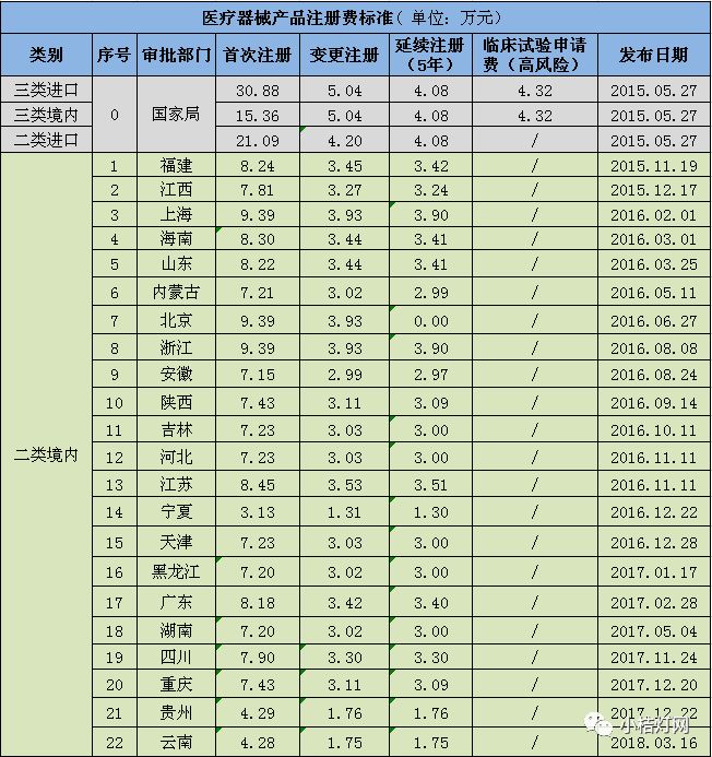 截至目前,我国共有22个省(直辖市、自治区)出台医疗器械产品注册费收费标准。