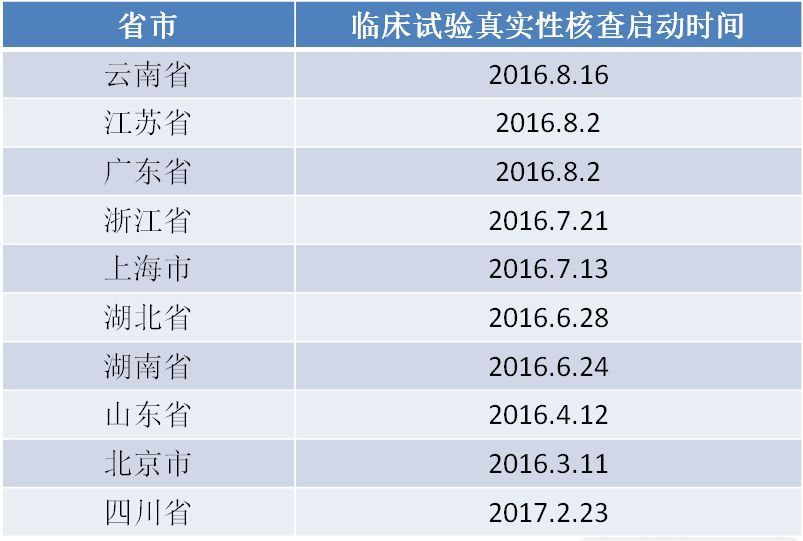 陆续已有 山东、北京、湖南、湖北、浙江、上海、江苏、云南等地开展了临床核查工作。各地发布的临床核查工作主要内容大抵一致但侧重点不同,是重要的参考文件。