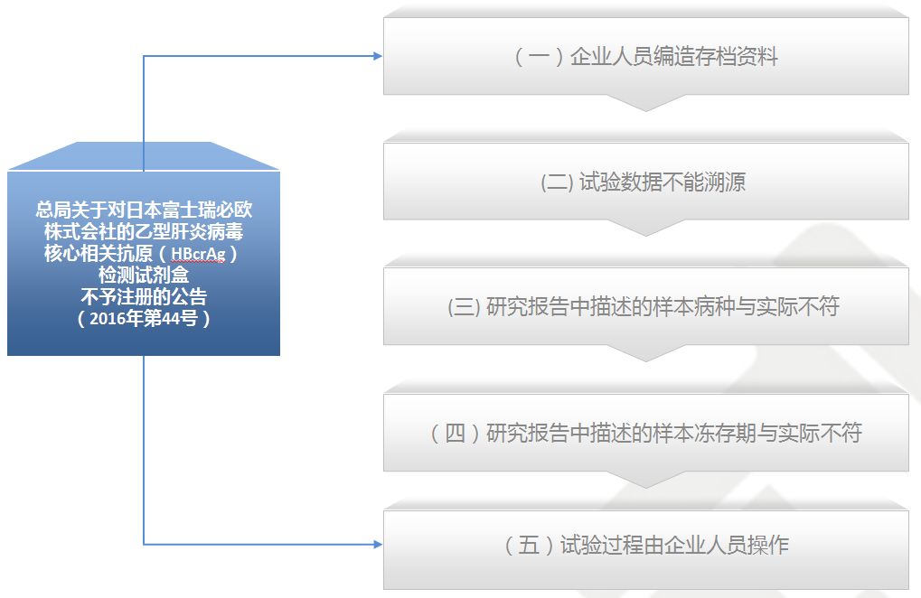 CFDA公布了一起医疗器械临床数据造假的案件,官网发布《总局关于对日本富士瑞必欧株式会社的乙型肝炎病毒核心相关抗原(HBcrAg)检测试剂盒不予注册的公告