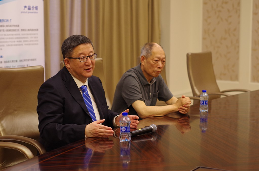 品生医学首席医学官郭欣(左)、福建省立医院副院长浦晓东(右)接受记者采访