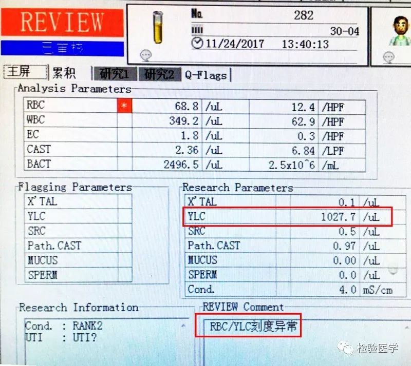 尿常规报告一般由尿液干化学检查结果+有形成分检查结果两部分组成,由于二者有些报告参数具有相似的临床意义,而检测的成分及原理却不同,因此常出现结果相互矛盾的情况。本文介绍的案例就是日常工作中比较常见的尿干化学血红蛋白与有形成分红细胞计数结果明显不符的情况。除此之外,还有白细胞酯酶与白细胞计数不符、蛋白与管型不符等。 患者女,93岁,急诊拟“呼吸衰竭”收治入院,入院后反复高热。尿常规检查仪器检测结果如下: 红细胞参数干化学与有形成分检测结果明显不符,提示镜检。 尿液干化学检查仪器各品牌检测原理基本相同,而尿液有形成分分析仪目前主要有流式细胞技术和数字影像技术两种技术平台(本实验室所用sysmex UF1000i属于流式细胞技术平台系列)。干化学和sysmex UF1000i仪器检测原理及二者常见结果不符原因如下。 1、干化学检测原理 尿干化学分析仪根据光电比色原理,通过多联试带上各种含特殊试剂的模块与尿液中相应化学成分反应发生的颜色变化,测定尿液中相应物质的含量。 2、sysmex UF1000i检测原理 利用半导体激光束照射经过荧光染色后在分析池中形成的鞘流样本,通过对各粒子产生的前向散射光、侧向散射光以及侧向荧光信号进行综合分析,从而对各个粒子进行识别,并作出红细胞、白细胞、细菌、管型等的定量报告。 3、临床常见结果不符可能原因 尿常规检查,当干化学与有形成分分析仪器检测结果明显不符时,要分别对干化学结果和有形成分检测结果进行原因分析,与此同时还要结合患者临床信息进行思考。在本案例中,笔者在审核尿常规报告时注意到,患者为老年女性,诊断:呼吸衰竭。 首先想到,这种情况患者常需要绝对卧床,为缓解尿潴留及减少并发症,方便护理及统计出入量,常需要留置导尿管排尿。经lis系统查看医嘱,患者确实已使用导尿管3天之久。众所周知,留置导尿管时间越长,发生尿路感染的可能性越大。结合尿液仪器检测结果干化学和有形成分白细胞参数均提示阳性(+++),初步判断患者因使用导尿管过久导至尿路感染可能。 其次,考虑到患者为危重症病人、年龄较大、机体免疫力低下,并且UF 1000i也报告研究参数YLC(酵母菌),结果为(1027.7/ul) (图1),进而怀疑患者可能并发了真菌感染。干化学血红蛋白与有形成分红细胞计数结果明显不符可能是由于真菌孢子干扰所致。 此外,也可能是药物因素引起干化学血红蛋白的假阴性,但在患者用药医嘱中,并没有发现使用会导至尿干化学血红蛋白假阴性的药物。对标本进行离心取沉渣显微镜检查,镜检结果:RBC 1~3/HP、WBC 50~60/HP、酵母样真菌++/HP(图2)。证实患者尿液干化学血红蛋白与有形成分红细胞计数结果不符是由于真菌孢子干扰所致。另外,我们发现患者亚硝酸盐结果阴性与尿路感染不符,是因为革兰阳性菌(如肠球菌)和酵母菌一般不能将硝酸盐转化为亚硝酸盐,故阴性结果不能排除泌尿系统感染的可能。随后患者中段尿细菌/真菌培养和鉴定,细菌结果:屎肠球菌,真菌结果:光滑念珠菌。 图1 UF 1000i标本检测结果界面 图2 尿沉渣显微镜镜检图片(×400) 随着自动化尿液分析仪的广泛应用,尿液检查的分析速度大大加快,且检测精密度高、生物安全性好,但不足之处是标本中含杂质较多时,有形成分难以准确识别、假阳性率高。因此,至今没有任何一种仪器能够完全代替人工显微镜检查,尿沉渣显微镜检查仍然是“金标准”。作为一名检验人员,在尿液检查时,不仅要掌握实验的规范操作,对于尿液中各种有形成分的形态特征、出现假阳性或假阴性结果的干扰因素以及仪器的性能也要十分熟悉。此外,检验人员还应具备一定的临床知识,能够将检验与临床结合,从患者的一些临床信息,初步判断结果异常的可能原因,从而有针对性的进行检验和处理,切实为临床提供准确、有价值的检验诊断报告。 (1)应用抗生素治疗引起正常菌丛失调,尤其是长期大量应用广谱抗生素时。 (2)激素、免疫抑制药的使用以及肿瘤患者行放射治疗和(或)化疗,使机体的防御功能减弱。 (3)留置导尿管,尿路畸形等尿路局部抵抗力下降。 (4)慢性严重疾病致使体质极度虚弱。 (5)糖尿病患者,抗念珠菌的功能降低,当血糖>8.34mmol/L(150mg/dl)时,念珠菌生长率提高。 (6)尿pH:念珠菌生长的适宜pH是5.1~6.4,正常尿液呈酸性,有利于念珠菌生长。 参考文献: [1] 牛之霞.真菌性尿路感染的发病机制与诊断标准[J].中国处方药,2014,12(04):144. [2] 王小明,张永根,廖洁.留置导尿危重症患者真菌性尿路感染分析[J].实验与检验医学,2012,30(01):55-56. [3] Carol A. Kauffman. Diagnosis and Management of Fungal Urinary Tract Infection[J]. Infectious Disease Clinics of North America,2014,28(1). 说明:本文为中华检验医学网、检验医学微信公众平台全网首发 |