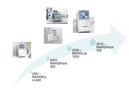 5.西门子(Siemens) 西门子在IVD领域拥有最齐全的产品线,包括免疫、生化、分子、血球、血凝、POCT等,致力于在诊断领域提供最完整的解决方案。西门子检验的发展史就是一部不断扩充产品线的并购史。 与其他产品一样,西门子的血气产品来自于收购公司拜耳诊断。最新的EPOC来自于美艾利尔。 秉承其一贯大而全的风格,在收购了EPOC之后,西门子在血气这个细分领域内,再一次成为产品线最为齐全的玩家。覆盖了血气产品全部的技术流派: