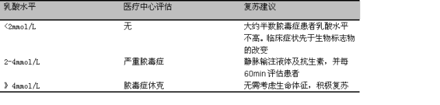 乳酸水平的监测 血清乳酸水平监测已经被拯救脓毒症运动所普遍推荐,尤其是在治疗严重脓毒症患者的过程中。多个研究评估了乳酸在脓毒症中的应用,证实:乳酸可以被用于评估脓毒症的危重程度及预后。乳酸水平大于等于2mmol/L时诊断脓毒症的特异性达到82%,但是使用乳酸诊断脓毒症的敏感性大约仅为30%,提示急诊和重症医学科医师需要结合临床情况进行判断,而非单纯依赖于实验室检查。当乳酸水平升高时,ICU患者的危重程度以及血管活性药物的使用率均升高。 对于乳酸水平的监测可以通过采集外周静脉血来完成,并不需要动脉血,因为动脉血和静脉血的乳酸水平具有非常强烈的线性关系。如果使用血气分析仪,则可以获得多点多次测量乳酸水平的机会。有研究评估了室温以及止血带对乳酸的影响,发现如果在采集血样后15分钟之内进行检查,上述因素几乎不会影响乳酸的水平;而如果拖延至30min后再做检查,则误差较大,建议重新采集血样。血气分析仪其他模块的参数,包括电解质、二氧化碳水平、以及阴离子间歇和乳酸水平无相关性,当乳酸水平大于4mmol/L时,大约有22.2%的患者二氧化碳水平仍然正常,25%的患者阴离子间隙水平正常。 判断预后 多个研究已经证实乳酸水平和脓毒症患者死亡率密切相关。Puskarich和其同事的研究证实:当乳酸水平在2.1mmol/L时,患者死亡率约为14.4%;而当乳酸水平达到20mmol/L时,死亡率升至39%。和其他指标如:血压以及疾病严重程度等因素不同,乳酸是一个预测患者死亡的独立危险因素。当乳酸水平大于2mmol/L时,乳酸和死亡率具有相关性;而当乳酸大于4mmol/L(即达到严重脓毒症的诊断标准)时,乳酸和死亡率具有很强的线性相关性,即使此时患者血压仍然正常。 当患者乳酸水平大于4mmol/L时,即使缺乏某些诊断脓毒症的标准,仍然要考虑脓毒症的可能性。评估可能引起乳酸升高的原因,包括胃肠道出血、任何休克状态(心源性、过敏性)、肠系膜缺血、以及中毒,如水杨酸盐过量。这些患者应该被收住入院,监测乳酸水平,直至乳酸将至正常。 隐匿性休克 对于那些生命体征正常脓毒症患者,也应该监测乳酸水平,以避免隐匿性休克的发生。那些血流动力学稳定,同时又伴有高乳酸水平(大于4mmol/L)的患者是死亡的高危人群。当机体开始承受炎症和增加的糖酵解时,乳酸可以在临床症状出现以及器官失代偿之前迅速堆积。因此,乳酸其实是一个脓毒症及严重脓毒症的早期生物标志物,升高的乳酸意味着更高的死亡率。 中间水平 中间乳酸水平在2.0-3.9mmol/L时,患者表现出让医生困惑的症状,尤其是血流动力学的稳定。乳酸水平在2-4mmol/L时,符合拯救脓毒症运动指南的严重脓毒症诊断标准。最近的文献证实:当乳酸水平在2-4mmol/L时,不伴有低血压的患者死亡率波动在3.2%-16.4%之间。因此,需要密切监测中间乳酸水平,同时必要时予以早期液体复苏、及抗生素治疗,详见表2。 表2 基于中间乳酸水平的复苏流程