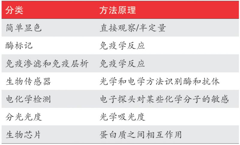 POCT快检技术:原理、特点及发展趋势 POCT产业的发展非常迅速,已成为检验医学发展的必然趋势,POCT快检技术不是一个单独的技术,而是一类检验技术的总称(表2),这类检验技术有个共同的特点,就是快(快速)、边(床边或身边)、便(方便、便利)、易(易操作、结果易判断)。 表2 POCT技术分类