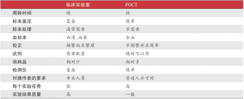 图2 为患者进行抽血采样 POCT技术越来越多的应用在大临床,但在口腔临床却很少应用,绝大多数口腔临床医生并不了解这项技术,但因其有临床需求、技术可行、且市场广阔,故需要加大宣传,同时各级职能部门应该加快制定各项法规、制度,促进POCT技术尽早应用于口腔。 POCT快检技术的前身今世 POCT快检技术(Point of Care Testing,POCT)也称床旁检验指在接近病人治疗处,由未接受临床实验室学科训练的临床人员或者病人(自我检测)进行的临床实验室检验。POCT的主要特点是快(快速)、边(床边或身边)、便(方便、便利)、易(易操作、结果易判断),是快速检测技术的延伸。 POCT技术近年来发展很快,广泛应用于医疗、环保、农业、食品、检疫、毒麻药品检测等的快速检测,2007年 POCT国内仪器试剂市场约为40~50亿规模,年增长率不低于30%。目前POCT技术主要应用在以下一些领域。 ①生殖系统POCT:早孕、排卵检测等; ②心、脑血管系统POCT:B型钠尿肽(BNP)、肌钙蛋白-1(CTnI)、肌红蛋白(Myo)、CK-MB检测等; ③血液相关疾病:血栓与止血、血红蛋白定量和血细胞计数、全自动血液流变和全自动血沉检测等; ④感染性疾病POCT:各种传染性疾病的检测; ⑤内分泌疾病POCT:血糖监测、糖化血红蛋白(HbA1c)、尿微量白蛋白检测等; ⑥血液生物化学分析POCT:干化学、电解质和血气分析、Hs-CRP(定量金标检测法高敏感CRP)、胆固醇芯片、tHcy检测等; ⑦治疗药物浓度的监测POCT:如地高辛、卡马西平、茶碱等药物浓度的监测等,有助于医师调整用药剂量,既能保证药效最大化又能有防止副作用甚至中毒,达到个体化用药的目的; ⑧针对临床毒理的POCT:中毒是急诊科常见的病症,鉴别诊断毒品类型有助于针对性治疗,如醋氨酚浓度检测、碳氧血红蛋白浓度测定等。 ⑨微量元素分析POCT:目前已有一种快速检测铅的仪器,可检测人体内血铅的含量,方便快捷,只需一滴血就可检测,样本用量少,20 μl血就可测测铅。微量元素分析仪精度高、灵敏度好、性能稳定,应用方便,操作简单、快捷。 毒品类POCT 产品主要是试纸类产品,以金标法进行尿液检测为主,主要特点是快速、方便、便于携带、准确率高等。毒品**一联合检测包括:病毒、吗啡、可卡因、大麻、**、氯胺酮。毒品测试的一个很重要的研究方向就是研制各种快速检测试纸和试剂。全球毒品类POCT产品是一个热点,广泛适用于海关、边检、商检、戒毒所、医院、军队征兵、高危人群普查、特种行业和招工体检工作中筛检以及卫生防疫部门对食品检查等。 三聚氰胺、瘦肉精、农药残留、咸菜、乳酸菌饮料中的乳酸浓度检测、大米中的镉含量、方便面中的塑化剂、畜肉及水产品鲜度检测、食品中有机酸、饮料行业以及化学制品中有机胺的检测等。 总之POCT已广泛应用于环境检测、应急抢险、出入境检疫检测测等领域,POCT与传统的实验室检验相比各有特点(表1),但POCT将是临床检验的发展方向。 表1 POCT与临床实验室的各自特点