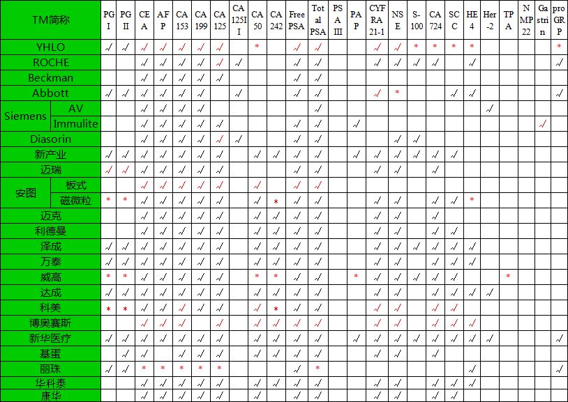 米粒整理了主要肿瘤标志物的主要生产企业,明细如下