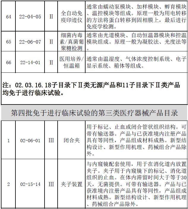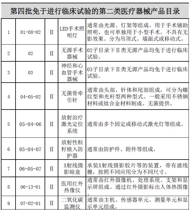 《第四批免于进行临床试验医疗器械目录》(征求意见稿)