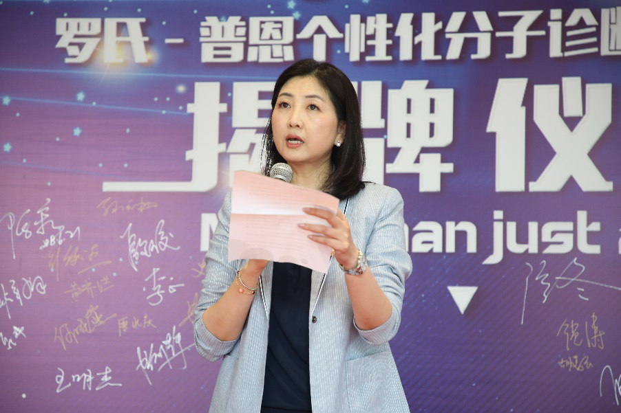 罗氏诊断分子解决方案-生命科学和组织诊断事业部总监苏忠美女士 罗氏-普恩个性化分子诊断创新实验室的成立得到了上海临港松江科技城投资发展有限公司的大力支持,公司董事长丁桂康先生对于行业内巨头罗氏诊断与医疗诊断界新锐普恩检验的此次合作寄予了极高的评价及厚望;作为罗氏诊断AVENIO ctDNA检测项目科研合作医院的负责人之一,复旦大学附属中山医院肝外科副主任、复旦大学肝癌研究所办公室主任史颖泓教授应邀出席揭牌仪式,并代表临床医生和患者道出了对于临床诊断先进理念和最新检测技术的迫切需求;罗氏诊断分子解决方案-生命科学和组织诊断事业部总监苏忠美女士则表达了罗氏诊断持续引领行业步伐,致力于推进AVENIO肿瘤基因检测创新项目本土化的决心和信心;最后,普恩检验母公司——顿慧医疗的创始人兼总经理温冬女士总结道:“今天,罗氏-普恩个性化分子诊断创新实验室的成立仅仅是一个起点,‘More Than Just a Lab’将无时无刻不提醒着我们这项事业所承载的人类健康的梦想和使命。”