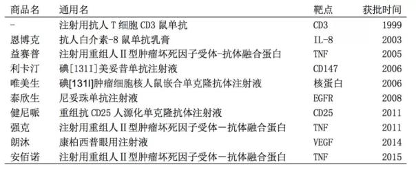 国内单抗上市情况:共批准28个单抗药品,国产10个 根据CFDA查询结果,截至2018年7月,国内共批准单抗药品28个(包括融合蛋白),其中国产单抗药品10个,进口单抗药品18个。 2018年6月15日纳武利尤单抗注射液(英文名:Nivolumab Injection)正式获得CFDA的批准上市,这也是首个在国内上市的PD-1单抗药物。