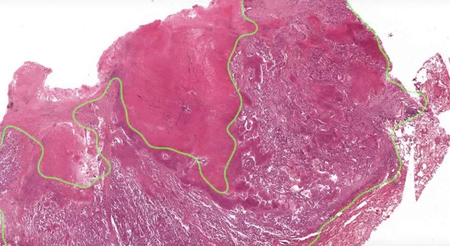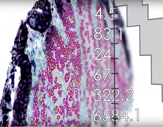 ▲ TissueMark软件的图像,识别数字化图像的区域(来源:飞利浦网站) (二)Inspirata Inspirata成立于2014年 ,总部位于美国佛罗里达州,是一家未上市的股份有限公司,主要提供数字化病理解决方案以及自动化病理工作流程服务[3],产品包括用于优化肿瘤检测、诊断和治疗方案的软件PathologyNEXT,以及一个多屏幕配置,支持查看、存储和管理图像信息的数字病理学软件Digital Pathology Cockpit。此外还有辅助诊断工具和决策支持工具mitoSēK™和histoSēK™ 。 mitoSēK™其实是个一步式的放大工具,可以识别“所有存在高有丝分裂可能性的图像”,即分裂细胞,这些细胞很可能是恶性生长的细胞。它旨在作为一种工具,通过即时突出显示潜在有问题的扫描区域,使病理学家可以有针对性的阅片并且不必手动执行此操作,无需逐步放大,从而节省时间。 ▲ 图片来源:Inspirata histoSēK™则可以自动识别和量化目标组织学区域,即可能含有有害生长的扫描载玻片区域,并且拥有显微切割,坏死区域量化或肿瘤负荷测量功能。