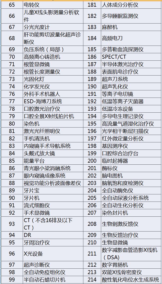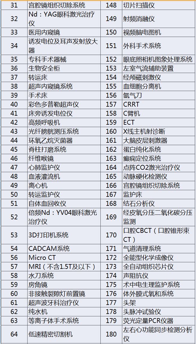 东莞市卫生计生局局长叶向阳明确,东莞将出台引导政策,全面倡导医疗行业优先使用国产设备,并鼓励本土企业通过技术标准的制定,成为第三方服务的提供者,参与到全市的医疗体制改革中。 四川省政府采购网发布了《四川省财政厅关于公布2018-2019年度省级政府采购进口产品清单的通知》(以下简称《清单》)。对于进口医疗设备采购限制更加严格。《清单》中允许采购进口产品的医疗设备由93种缩减到39种,一次性减少54种! 国家发改委等8部委联合发布《关于促进首台(套)重大技术装备示范应用的意见》,32种医疗设备产品可以享受到“首台套”推广应用政策的扶持。在政府采购中优先、鼓励采购首台套创新产品等等一系列扶持政策! 国产医疗器械加速进口替代,加大自主创新力度是一方面,如何推动高质量、具有自主知识产权份国产设备进医院,提高市场的占有率,才是国产创新医械企业长期发展并加速崛起的关键。 上下滑动图片即可查看完整清单 |