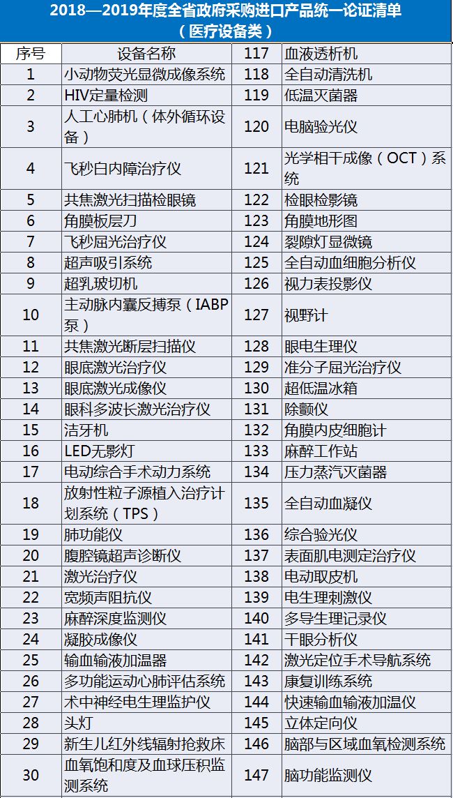 近日,浙江省财政厅发布了《2018-2019年度全省政府采购进口产品统一论证清单(医疗设备类)的通知》。