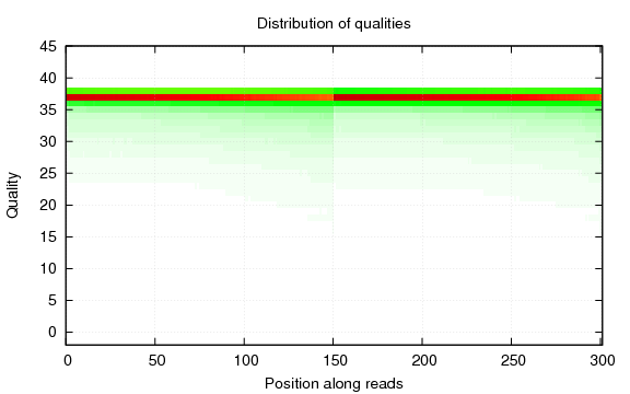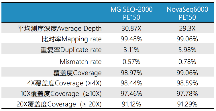 图5 MGISEQ-2000 reads碱基及质量分布 Q20 97.2% Q30 91.3% 表1 测序平台间WGS基本信息
