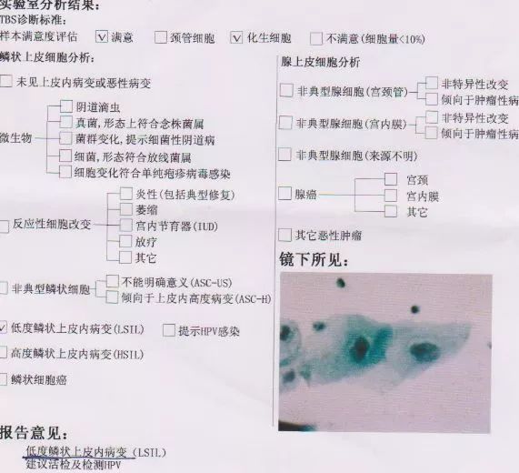 HPV检测报告: 一般是检测可能致宫颈病变和宫颈癌的高危型HPV病毒,如16、18、31、33、35、39、45、51、52、56、58、59、66、68型等。 临床上HPV检测产品众多,不同医院、不同检测机构检测的型别有所不同,但都会包含主要的高危型别。 不同医院、不同检测机构的HPV检测报告单也有差异。有的把每一型列出来,分别报出“阴性”“阳性”结果,哪一型阳性,就表明是哪一型的HPV感染。有的仅对16、18型分型报告,其他的型别都归到一起,那么其“阳性”结果的含义并不是所有其他型别的HPV都阳性,而是其中有一型是阳性,这说明有HPV感染,但不知道具体是哪一型HPV感染。还有的是HPV定量检查,检测结果显示一个数值,数值高低不一定与病变严重程度成正比。 如果TCT检查未发现上皮内病变或恶性病变,HPV检测没有阳性,则筛查结果正常,以后按筛查方案定期检查就可以了。 如果TCT检查发现有上皮内病变或恶性病变,HPV检测有阳性,则需按照筛查流程进一步检查处理(见下一条)。 六、如何确诊宫颈癌前病变和宫颈癌? TCT检查异常和HPV检测阳性就一定是患上了宫颈癌前病变吗? 当然不是! TCT检查和HPV检测只是一个筛查,最后还是需要阴道镜和宫颈组织病理学检查才能明确诊断。这就是宫颈癌前病变和宫颈癌的诊断处理“三阶梯”程序: 筛查:宫颈细胞学检查(巴氏涂片、TCT检测)+HPV检测。 助诊:细胞学和HPV筛查出现异常时进一步做阴道镜检查,通过用醋酸和碘将宫颈染色,镜下观察宫颈是否存在可疑病变区域。 确诊:如在阴道镜下发现的可疑病变区域,在该区域取活体组织,并刮取宫颈管组织,做组织病理学检查最后确诊。 七、TCT+HPV联合筛查流程 没有症状也需要筛查吗? 当然需要! HPV感染宫颈后通常不会出现任何不适症状,病毒可以潜伏多年才引起宫颈细胞变化,即发生癌前病变。而癌前病变发展到宫颈癌可以长达10多年,这段都可以没有任何症状。不少只有到了宫颈癌晚期才会出现白带多有异味、性交后阴道出血、下腹痛或骨盆痛等症状。 宫颈癌筛查的目的就是为了在没有症状的时候发现癌前病变。癌前病变的治疗效果非常好,治愈率几乎达到100%,而如果发展成宫颈癌,则治疗很困难,预后也差。所以,每个女人都需要进行宫颈癌筛查。 八、以下是宫颈癌高危人群,需要重点关注: