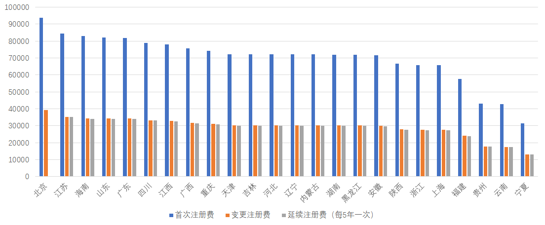 | 在各省(市)发布的第二类医疗器械产品注册费收费标准中,北京、上海、浙江三省(市)曾以首次注册收费93900元,变更注册收费39300元,延续注册收费39000元的最高收费领跑全国。紧追上海市食品药品监督管理局对国产第二类医疗器械注册收费的下调政策,浙江省人民政府办公厅于2018年10月17日印发《关于进一步减轻企业负担增强企业竞争力的若干意见》,意见第四条“停征一批行政事业性收费”中规定“自2018年8月1日起,药品、医疗器械产品注册费在现行基础上下调30%”。截止目前,包括陕西省、福建省在内已有4个省份下调了第二类医疗器械产品注册费收费标准。 |