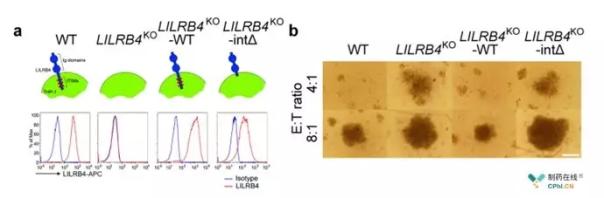 肿瘤细胞与T细胞共培养研究表明:LILRB4表达的肿瘤细胞可抑制T细胞生长,之后研究人员将肿瘤细胞上的LILRB4敲除,结果发现肿瘤细胞无法抑制T细胞增殖。