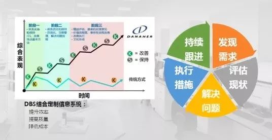 DBS通过多阶段的改善与保持阶梯式提高,按照持续跟进、发现需求、评估现状、解决问题、执行措施的一个循环开展。