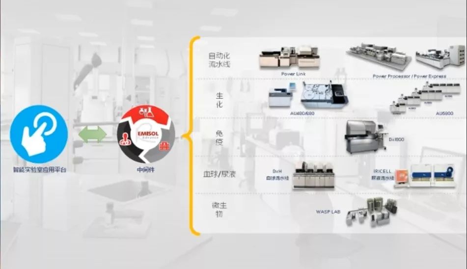 关键在于信息系统能否连结医院内所有自动化仪器,例如内分泌科有个实验室,检验科有个实验室,两个实验室不联机的话容易出现结果不一致,就会产生医患纠纷。而如果联机就能够有效避免这类的问题。现在的智能实验室的应用平台,通过如Emisol这一类的实验室中间件系统把所有科室都连接了起来。