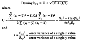 EP9-A3文件对检测程序比较数据的处理,除了有多个图示方法,便于实验室使用观察外,最后确定检测程序比较反映的不正确度大小,还是必须采用直线回归统计。但是,与以往的EP9文件不同的是,文件介绍了至少三种回归统计方法,如最小二乘法、Deming回归、和Passing-Bablok回归,还有加权的回归。实验室对这些回归方法的原理和具体使用较生疏。我在这篇微信中,简要地向大家做介绍。 一、直线回归统计意义(最小二乘法) 在临床实验室的日常实践中,用得最多的是最小二乘法的直线回归。这个统计方法的假设前提是:所有统计数据以x值为准,y值成为x的应变量。这样的前提使得出的直线回归,确实是问题。在进行方法学比较时,比较的x和y是互相独立的,不存在y依赖x。 欲了解两组有关联的实验数据间的数学关系,可以作回归统计。必须先作图,看趋势,再统计。具有直线趋势的,再作直线回归统计。 期望的直线,与所有的实验点具有最佳的配合。最小二乘法做法是:如前述,所有统计数据均以x值为准。因此被认为当x和y方法比较时,具有的差异是因为引入了y方法所致。在相同的xi下,有原先的实验点xi,yi,假设已经有了回归直线,则在xi下,在回归线上有回归统计估计的xi,yi点。因此在y值上实验得到的yi和统计估计的yi间的差异 被认为因引入回归统计所致。因此,使用回归统计引入的回归直线,应该使所有的回归直线引入的统计误差为最小,即 最小下配合的回归线,被称为最小二乘法。平方即二乘。最小二乘法也即使平方和为最小。具体的统计过程,在一般统计书均有介绍。求出回归直线的斜率: 求回归直线的截距: 得到该回归直线的等式为: 二、Deming回归 前述的最小二乘法的直线回归,它的统计要求前提,丧失了两个方法学比较的关系。它一切以x为准,统计用来观察y对于x的关系。如果二者有差异的话,均被认可是引入y所致。这样的比对失去了真实含义!不要否认,x和y方法对相同一组病人标本检测时,均有误差! 关于Deming回归,以图示表示。 在实际的Deming回归统计中,还必须考虑x和y方法对一组病人样品的检测值的分布是否一致,即要考虑每组x值的标准差Sx和y值的标准差Sy是否接近一致。还要考虑两个方法自身的重复精密度是否比较一致等。有关计算,各位可以寻找统计书籍或软件进一步去了解。为计算Deming的斜率,假定x和y在整个检测范围内具有恒定的不精密度,误差均为正态分布。若x和y的检测误差比率可以估计,当x为自变量时: (经过初步的计算,知道在计算Deming回归斜率时,λ因子是关键。若λ趋近1,则U很小,斜率即接近1。因此,今后要用Deming回归统计时,一定要有不同样品的分析物的浓度下,2个比较方法的精密度数据,这样,才能完成Deming统计。) 可惜,国内外的统计书上,没有介绍Deming回归的统计方法。因此,所有的介绍只能依靠杂志和有关公司的介绍。另外,CLSI的EP9-A3文件的附录里,有详细介绍Deming回归的内容。需要了解的可参阅这部分内容。 Deming回归只能做一个概要的介绍,它的计算有些复杂,需要认真学习。今后,在工作中需要使用Deming回归统计时,再做深入讨论。 三、Passing-Bablok回归 Passing和Bablok形成了方法比较的非参数检验。它不需要关于检测值分布的前提。它也能够检查非线性,在对于离群值上非常稳健。在做法上,计算任何两个实验结果点间所有可能的斜率。 每条连接线的斜率为: 一共有2n条任何两点链接的线。所有连线的斜率为Sij。这些斜率的中位数|b=med{Sij}为Passing-Bablok的回归线斜率。然后再估计出所有对于回归线的各个实验点的所有残余yi-bxi,回归线的截距 a = med{yi-bxi}(为所有残余的中位数。) |