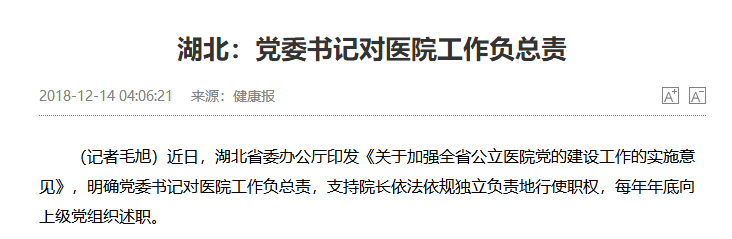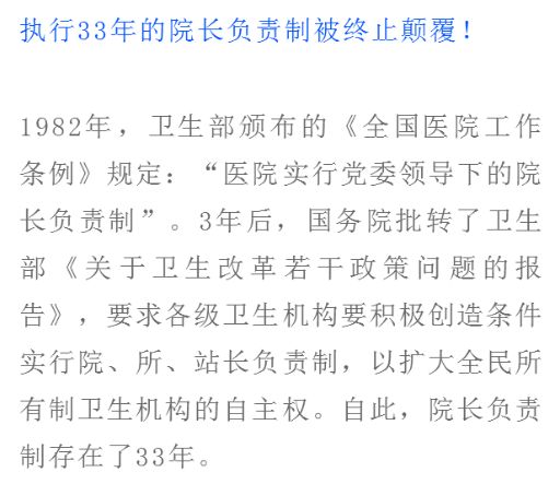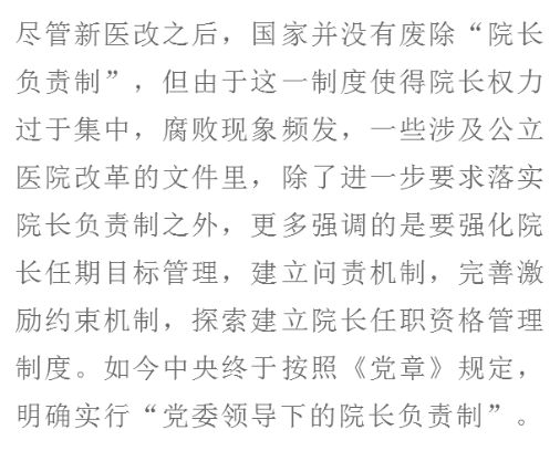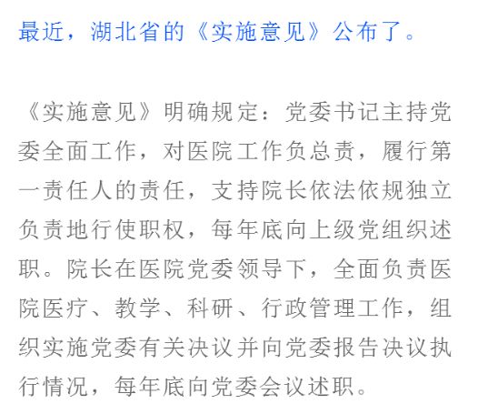 导读:新的规定彻底终止颠覆了已经执行33年的院长负责制! 2018年6月,中共中央办公厅印发《关于加强公立医院党的建设工作的意见》(以下简称《意见》),明确提出,公立医院实行党委领导下的院长负责制。要求各地区各有关部门要结合实际,于2018年8月前制定贯彻落实本意见的实施办法。 尽管新医改之后,国家并没有废除“院长负责制”,但由于这一制度使得院长权力过于集中,腐败现象频发,一些涉及公立医院改革的文件里,除了进一步要求落实院长负责制之外,更多强调的是要强化院长任期目标管理,建立问责机制,完善激励约束机制,探索建立院长任职资格管理制度。如今中央终于按照《党章》规定,明确实行“党委领导下的院长负责制”。 然而,对于公立医院里,到底的书记大还是院长大,一直是大家普遍关注的问题。 但是由于《意见》规定书记是党委会议的召集人、主持人,实际上是会议组织者,因此什么时间开会,谁该“参加”会,会议议题的确定,会议结论的做出甚至会议执行的力度等等,自然是书记有更多的自由裁量权。 尽管在《关于新形势下党内政治生活的若干准则》(以下简称《准则》)明确指出,党委(党组)主要负责同志在研究讨论问题时要把自己当成班子中平等的一员,但实际上Ta并不仅仅是普通的一员。 第一责任人应该承担什么样的责任 湖北《实施意见》明确党委书记主持党委全面工作,对医院工作负总责,履行第一责任人的责任,那么这个第一责任人应该承担什么样的责任才不辜负这样的权力呢?笔者认为这些责任包括但不限于以下四点: 1、严格执行议事决策规则、决策事项和范围。《意见》要求,健全医院党委会议、院长办公会议等议事决策规则,明确各自决策事项和范围,不得以党政联席会议代替党委会议。如果会议违背议事决策规则、决策事项和范围,应当担责。 2、严格执行决策程序。《意见》指出,重要行政、业务工作应当先由院长办公会议讨论通过,再由党委会议研究决定。 除此而外,《意见》还规定,凡属重大问题都要按照集体领导、民主集中、个别酝酿、会议决定的原则,由党委集体讨论,作出决定。重大问题在提交会议前,党委书记和院长要充分沟通、取得共识。还要加强党务、院务公开,强化民主管理和民主监督。如果违背这些决策程序,应当担责。 3、会议中不能搞一言堂。《准则》指出,党委(党组)主要负责同志必须发扬民主、善于集中、敢于担责。在研究讨论问题时要把自己当成班子中平等的一员,充分发扬民主,严格按程序决策、按规矩办事,注意听取不同意见,正确对待少数人意见,不能搞一言堂甚至家长制。如果违背,应当担责。 4、集体领导,民主决策 《准则》指出,各级党委(党组)必须坚持集体领导制度。凡属重大问题,要按照集体领导、民主集中、个别酝酿、会议决定的原则,由集体讨论、按少数服从多数作出决定,不允许用其他形式取代党委的领导。落实党委议事规则和决策程序,坚决反对和防止独断专行或各自为政,坚决反对和防止议而不决、决而不行、行而不实,坚决反对和防止以党委集体决策名义集体违规。如果不执行这项原则,应当担责。 如今,党委书记被明确规定为医院的一把手,但如果不汲取“院长负责制” 的教训,不遵守党纪党规,肆意妄为,不明确责任、权力对等,也许比单纯的院长负责制更糟糕,因为不但遏制不住腐败还可能出现争权夺利、拉帮结派,影响决策效率等。但愿,笔者这些担忧是杞人忧天。 来源:看医界 |