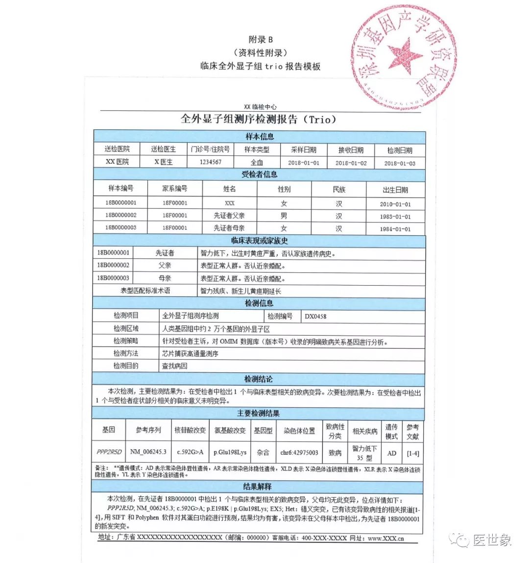 2018年12月26日,深圳基因产学研资联盟发布《临床单基因遗传病基因检测报告规范》团体标准,该标准由深圳华大基因股份有限公司、深圳基因产学研资联盟等21家单位,黄尚志、顾卫红、沈亦平、孙洪业、于世辉、朱宝生等55位基因领域 KOL 联名起草。并于2018年12月27日开始实施。 该标准规定了临床单基因遗传病基因检测报告应包含的内容以及要求,适用于第三方医学检验机构、医院或大学诊断实验室等出具的临床单基因遗传病基因检测报告。 《临床单基因遗传病基因检测报告规范》团体标准的具体内容如下:(点击查看高清图片) |