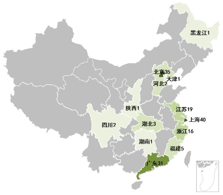 从地域分布情况看,液体活检作为新兴的生物技术,涉足的国内企业几乎都分布在沿海或近海城市。其中北上广地区分布最多,北京市36家、上海市40家、广东省31家。其次是江浙地区,其中江苏省19家,浙江省16家。湖北省和四川省也有较少分布,分别为3家和2家。