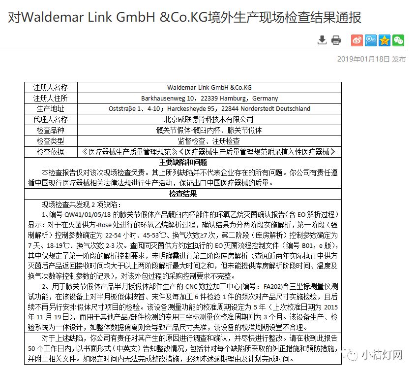 2018年,国家药品监督管理局组织对美国、德国、意大利等9个国家的26家进口医疗器械生产企业进行了境外生产现场检查,并于近日公布了吉卢比有限责任公司等5家企业的检查结果,其余厂家检查情况将陆续公布。对5家企业执行中国医疗器械生产质量管理规范存在的问题,国家药品监督管理局已要求企业落实整改措施并提交整改报告。 开展进口医疗器械境外生产现场检查,是国家药品监督管理局落实“四个最严”要求、履行监管职责的重要手段。国家药品监督管理局将按照《药品医疗器械境外检查管理规定》,继续做好医疗器械境外检查工作,持续推动进口医疗器械境外生产企业符合中国法律法规,进一步保障进口产品安全、有效。